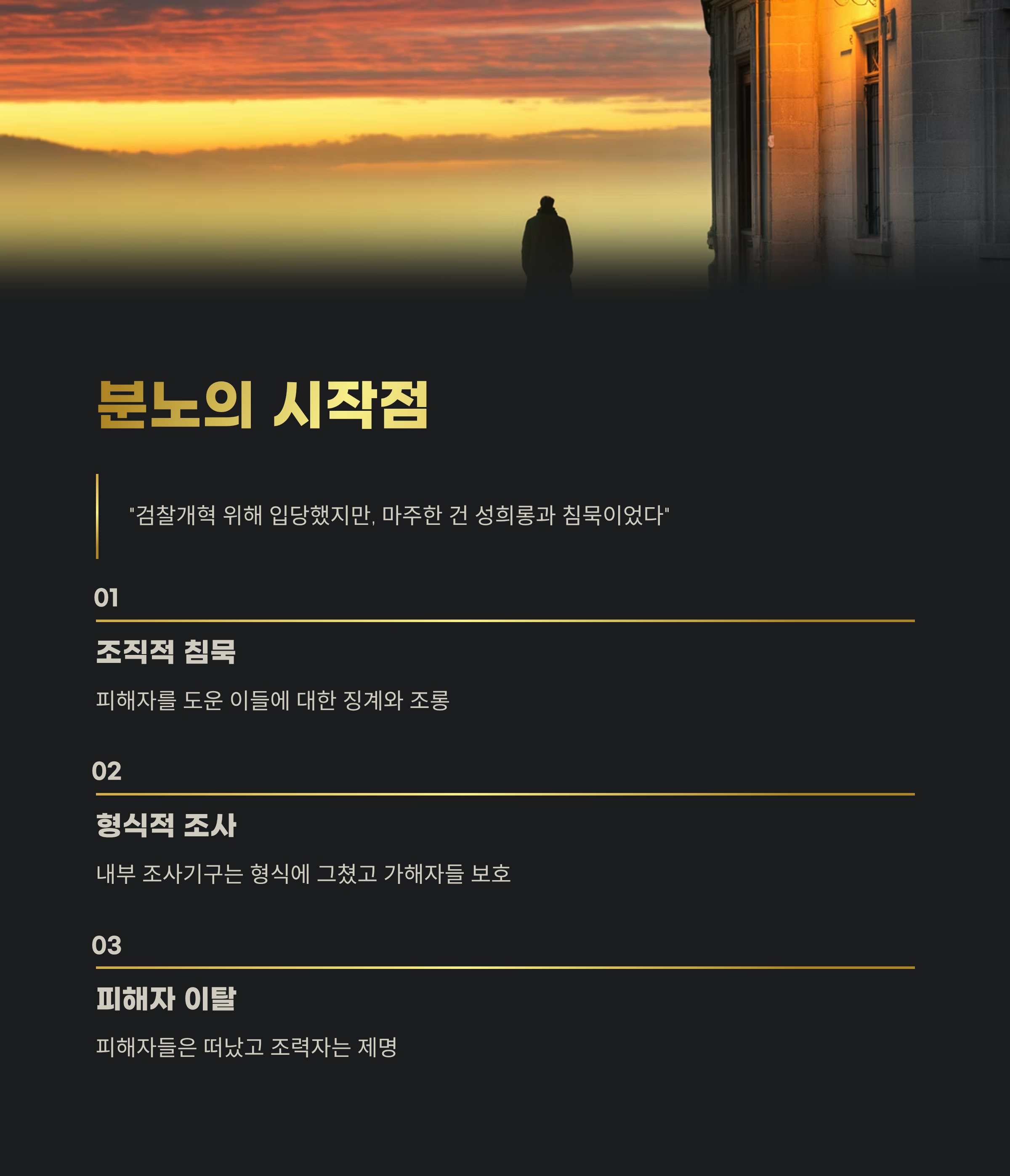“검찰개혁 위해 입당했지만, 마주한 건 성희롱과 침묵이었다.”