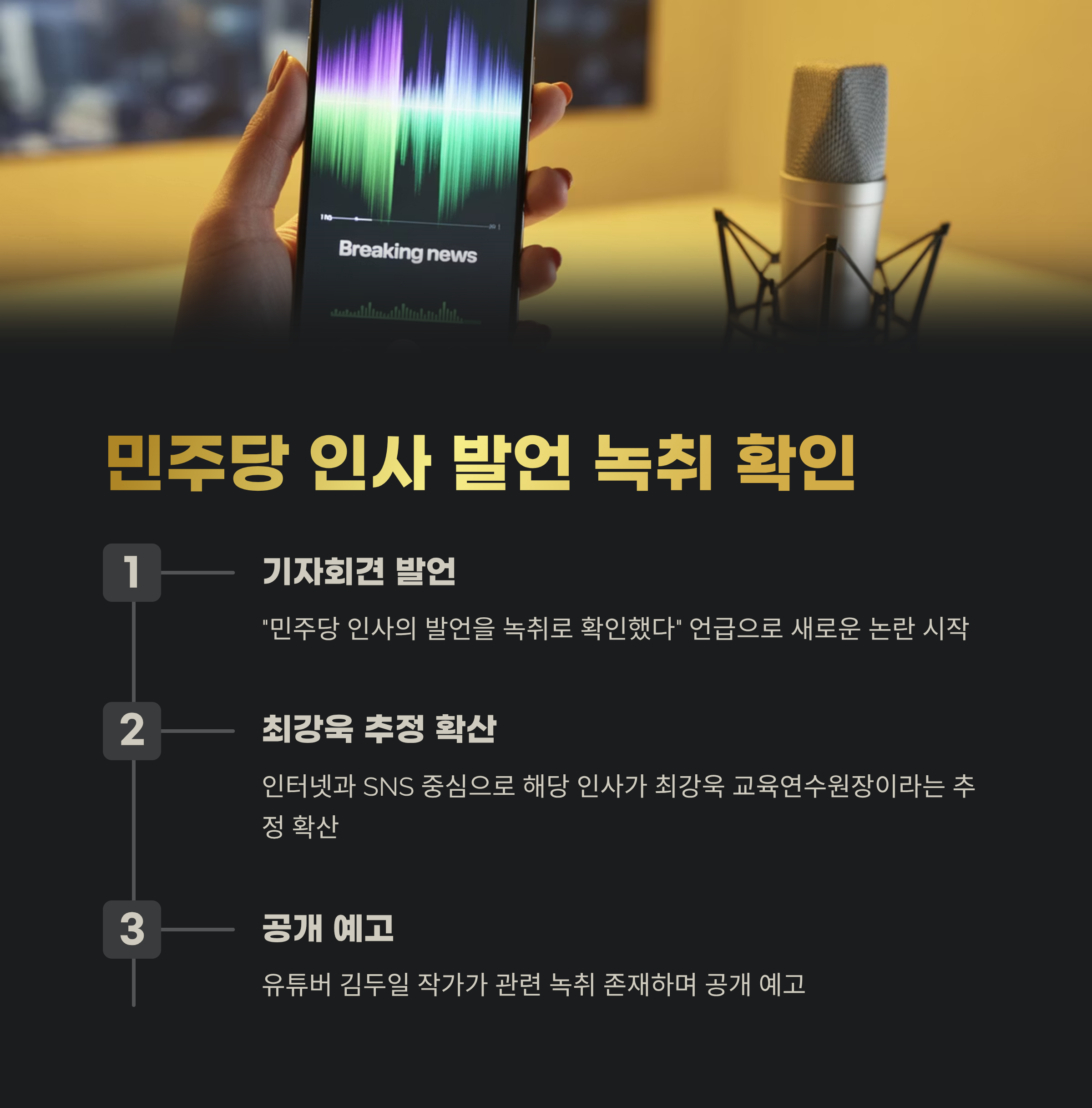인터넷과 SNS를 중심으로 해당 인사가 최강욱 민주당 교육연수원장이라는 추정이 확산됐습니다. 유튜버 김두일 작가는 관련 녹취가 존재하며 공개를 예고했습니다. 아직까지 발언 전문은 공개되지 않았지만, “성비위 사건을 별것 아닌 문제로 표현했다”는 주장이 제기되며 정치권을 술렁이게 만들고 있습니다.