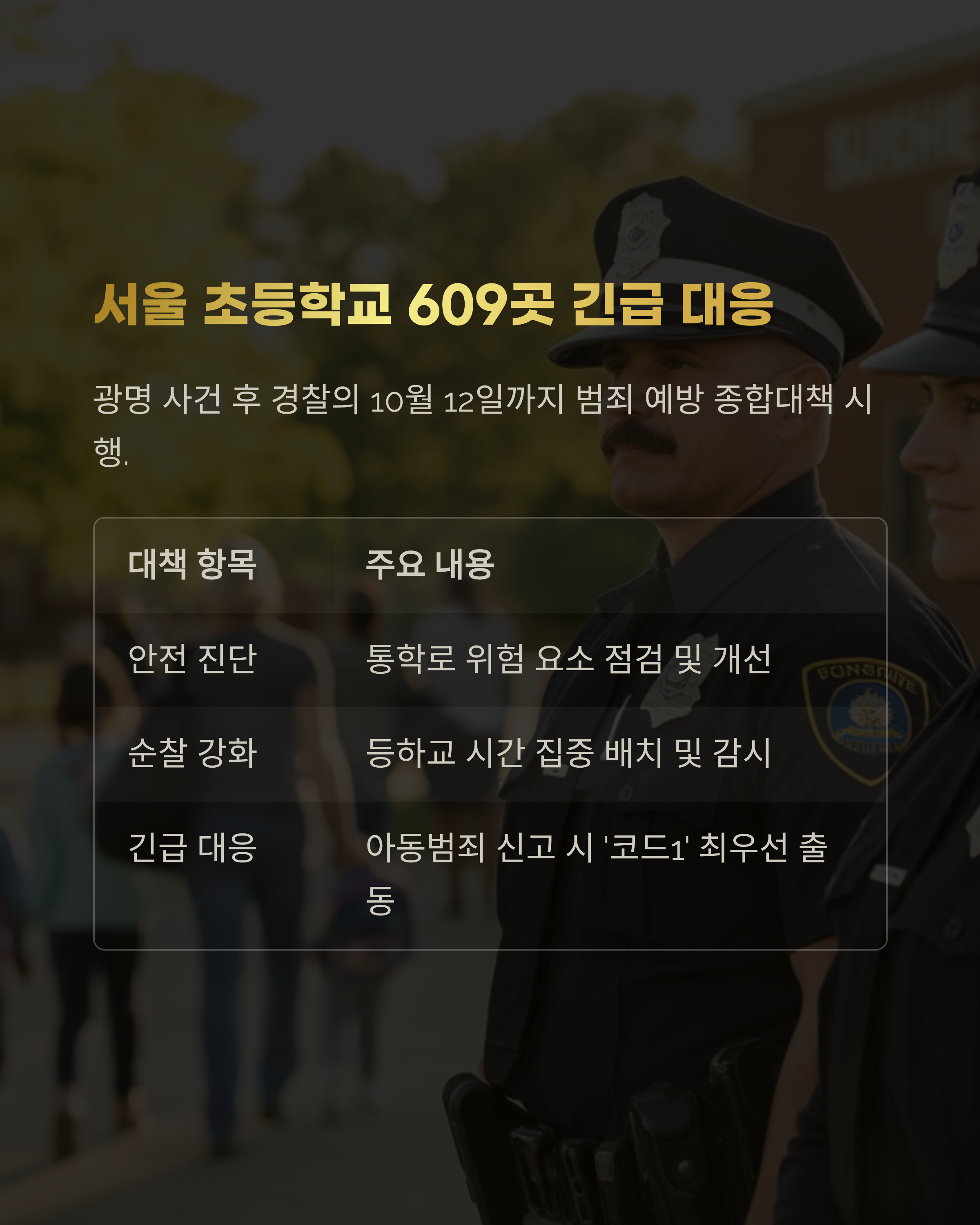 | 긴급 대응 | 아동범죄 신고 시 '코드1' 최우선 출동 |
