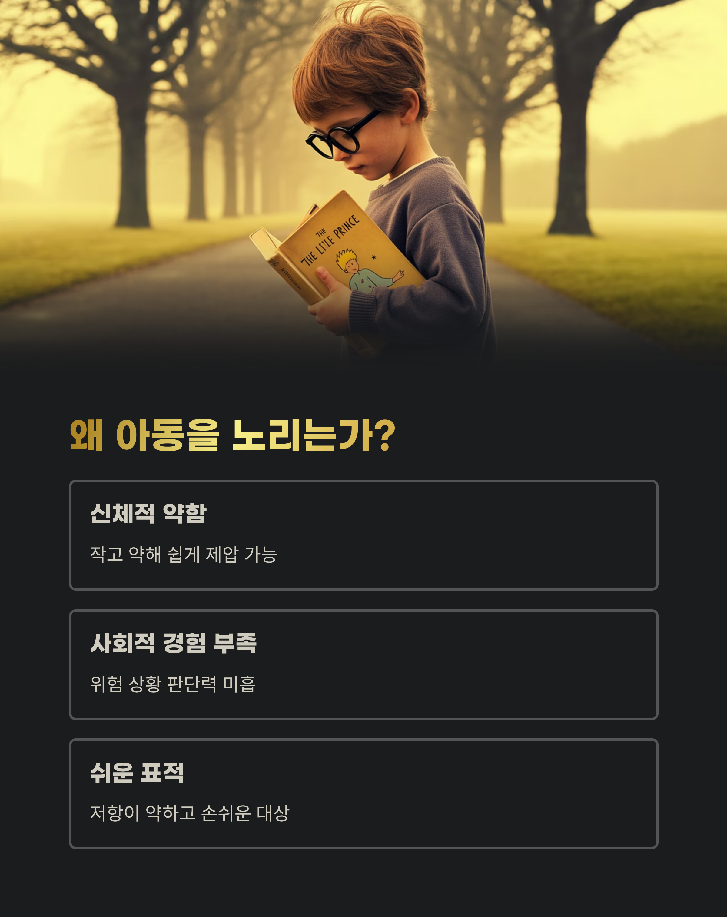 범죄자들이 아동을 노리는 이유는 단순합니다.
