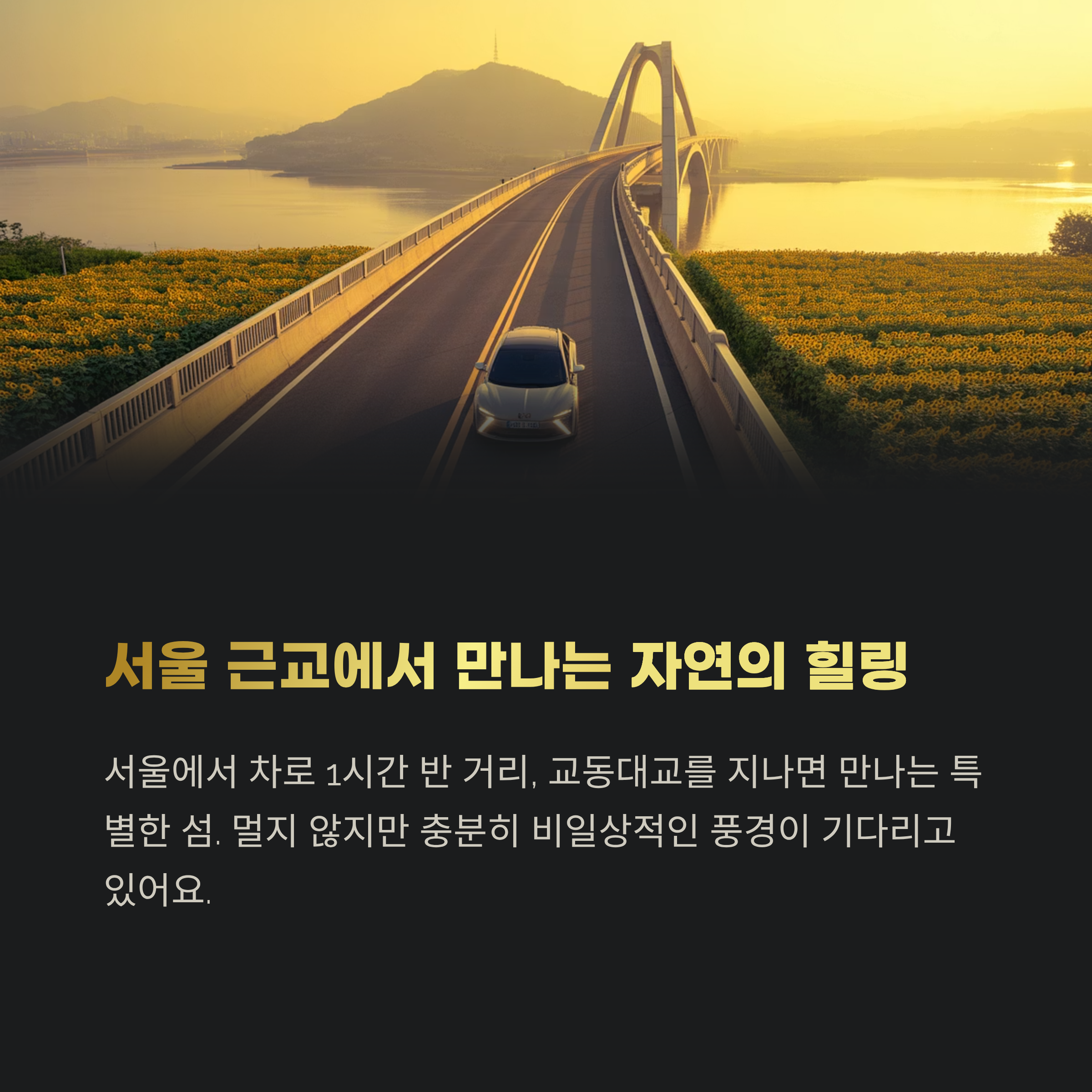 서울에서 차로 1시간 반 거리, 교동대교를 지나면 만나는 특별한 섬.