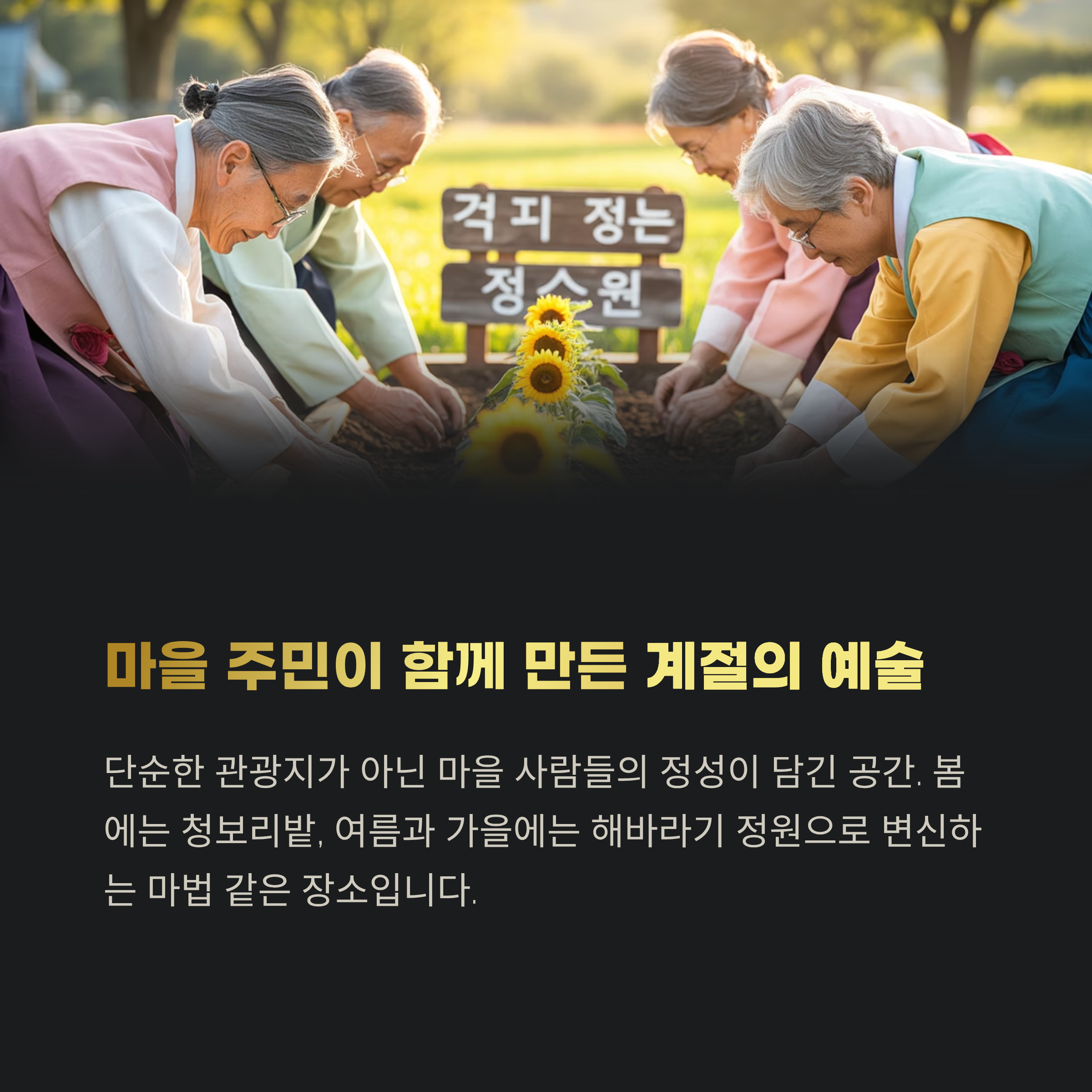 매년 씨를 뿌리고 가꿔온 마을 사람들의 정성이 고스란히 담겨 있습니다.