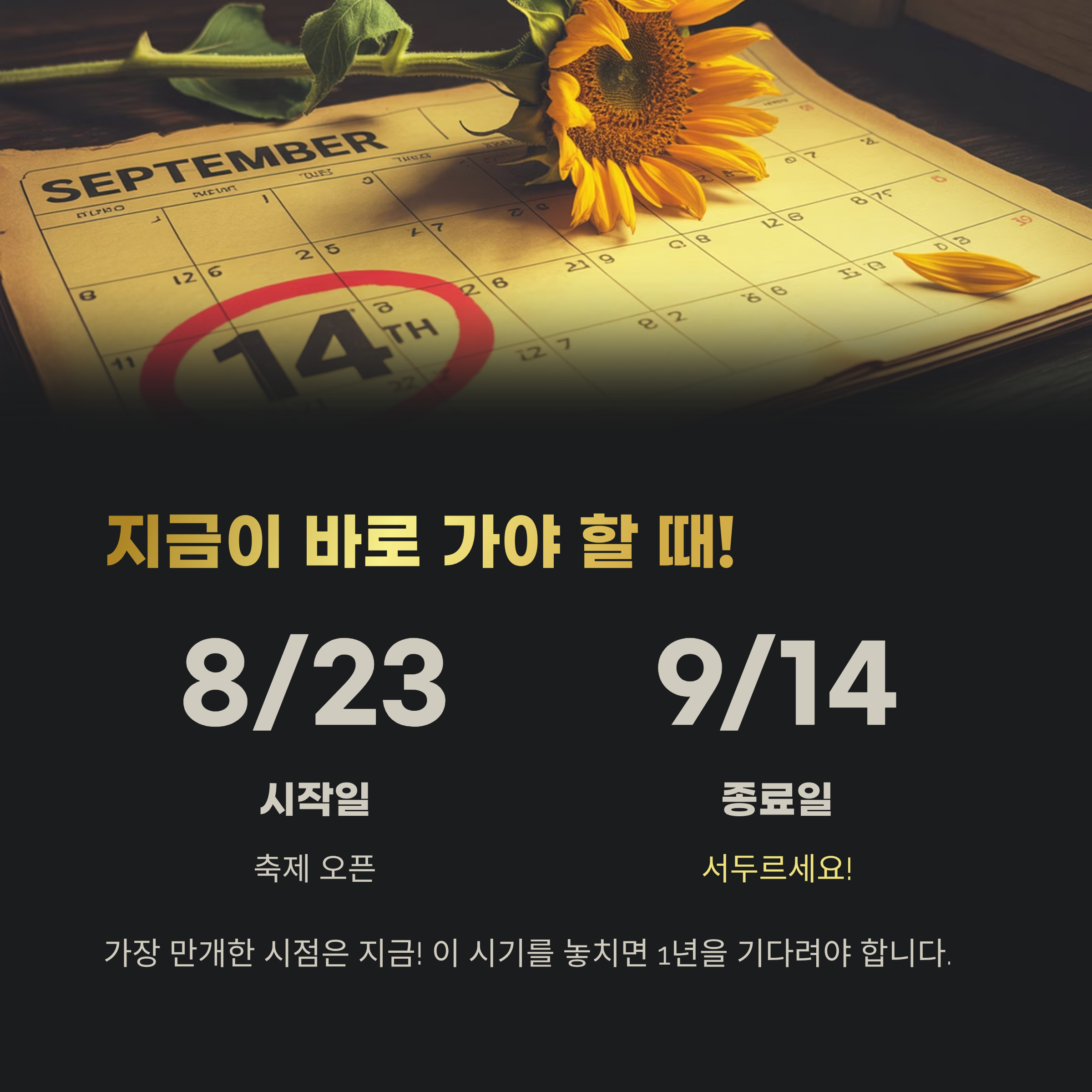 지금이 바로 가야 할 때, 9월 14일까지!