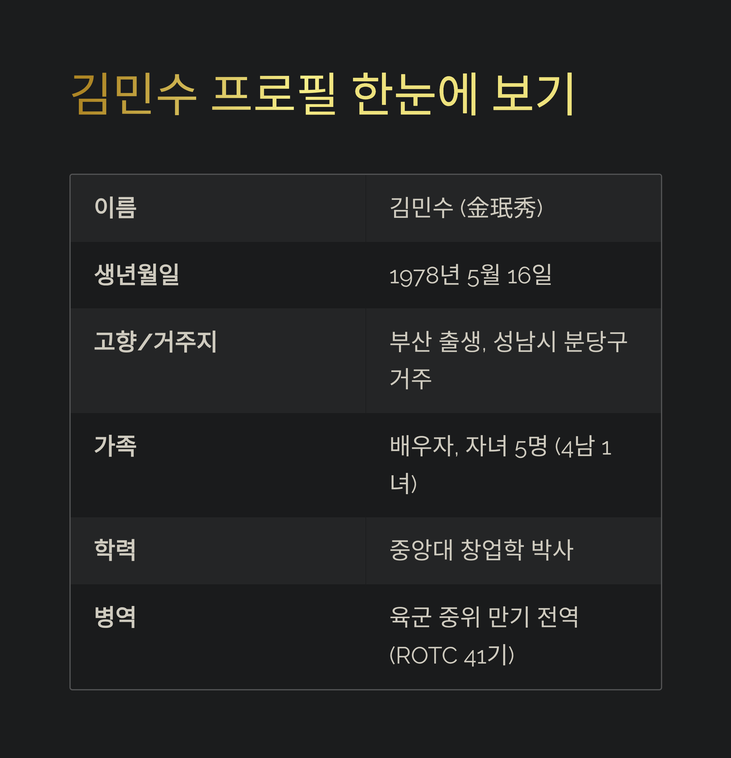 고향부터 학력·가족·정치 이력까지 김민수 프로필 완전 정리