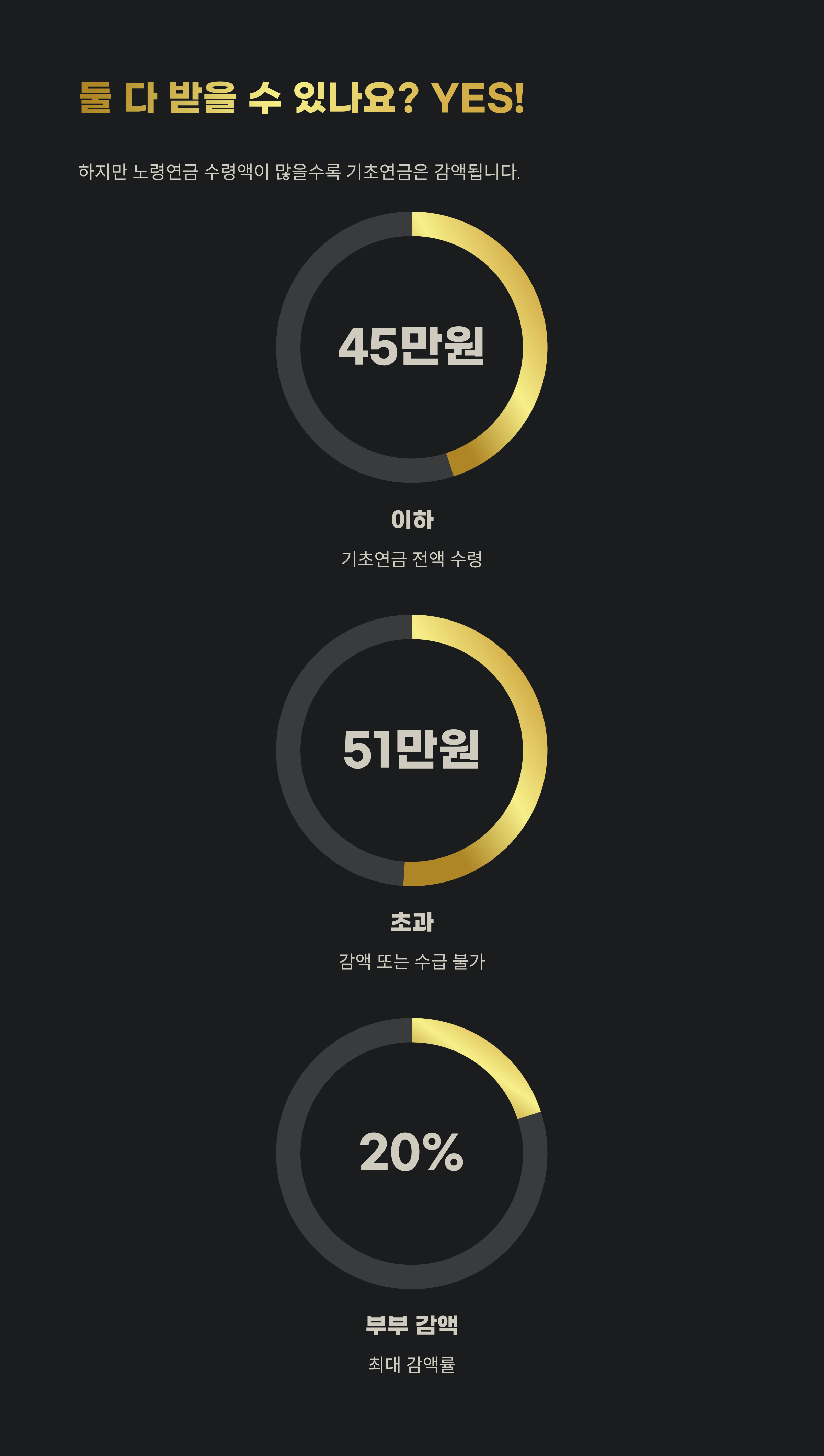 | 45만 원 이하 | 기초연금 전액 수령 가능 |