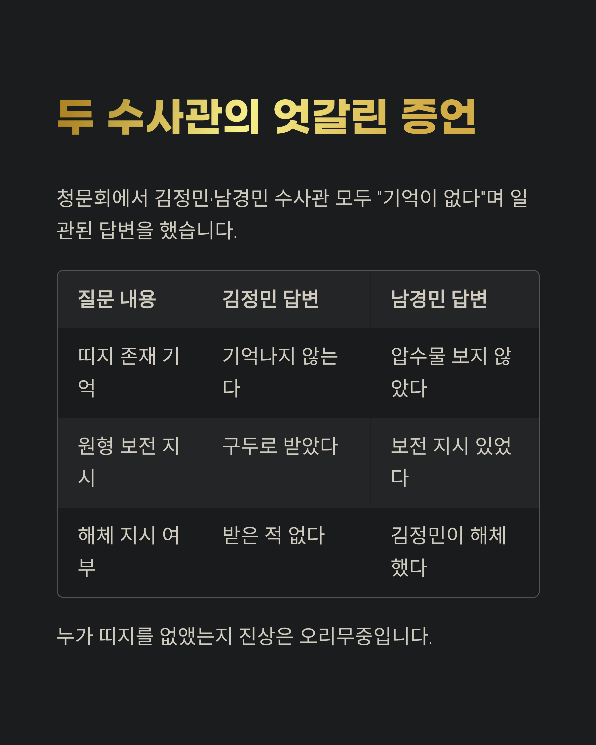 정리하며, 김정민 수사관의 ‘기억나지 않는다’는 말이 남긴 것