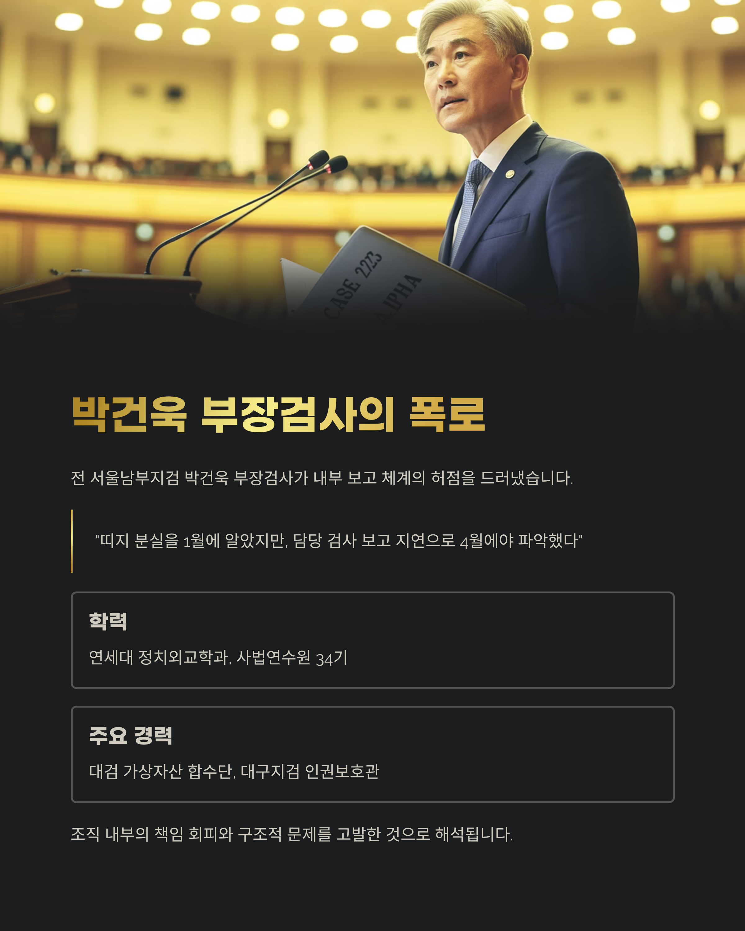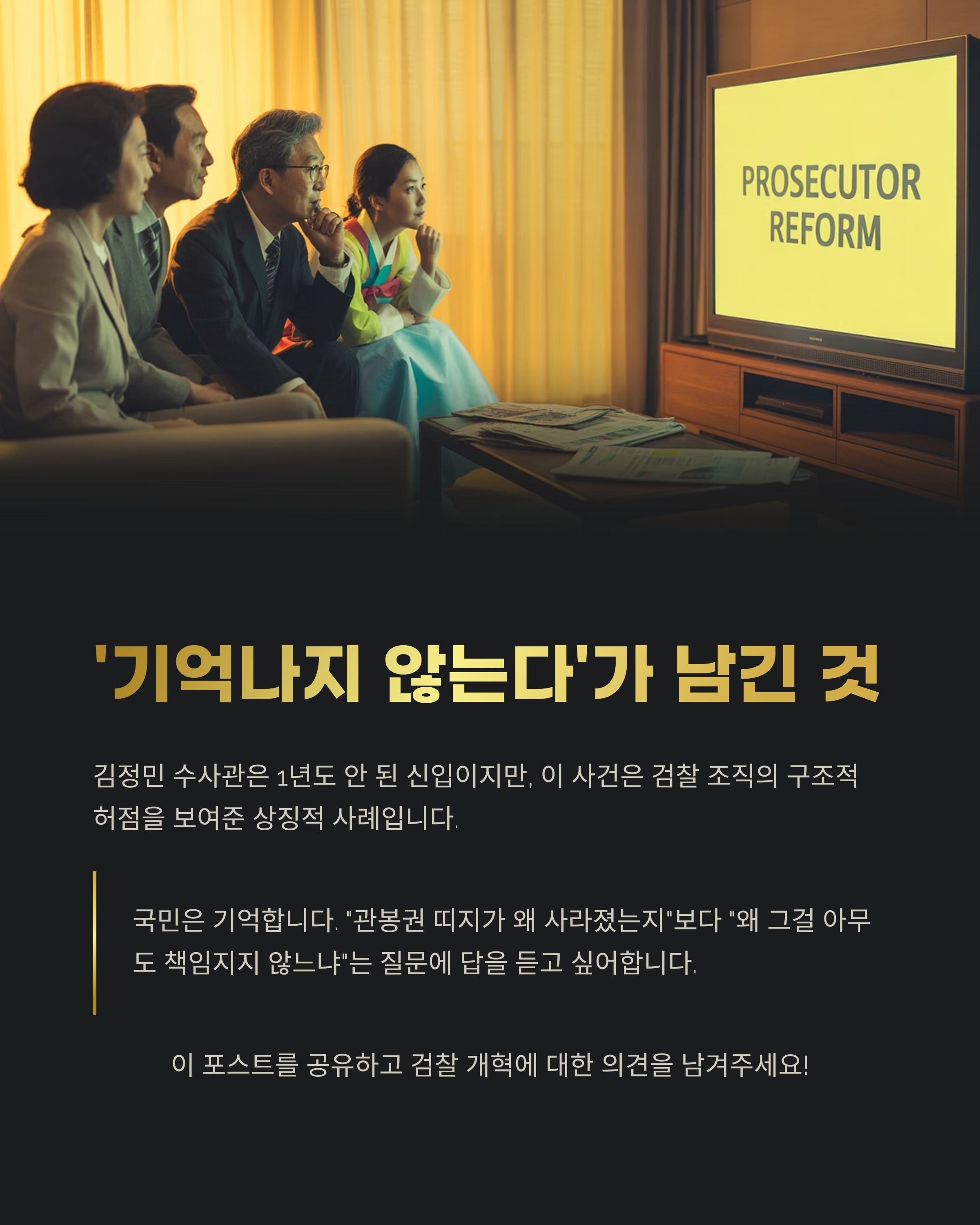 하지만 이번 사건은 단순 실수라기보다, 검찰 조직의 구조적 허점과 권한 남용, 책임 전가 문화를 고스란히 보여준 상징적인 사례로 남을 가능성이 큽니다.