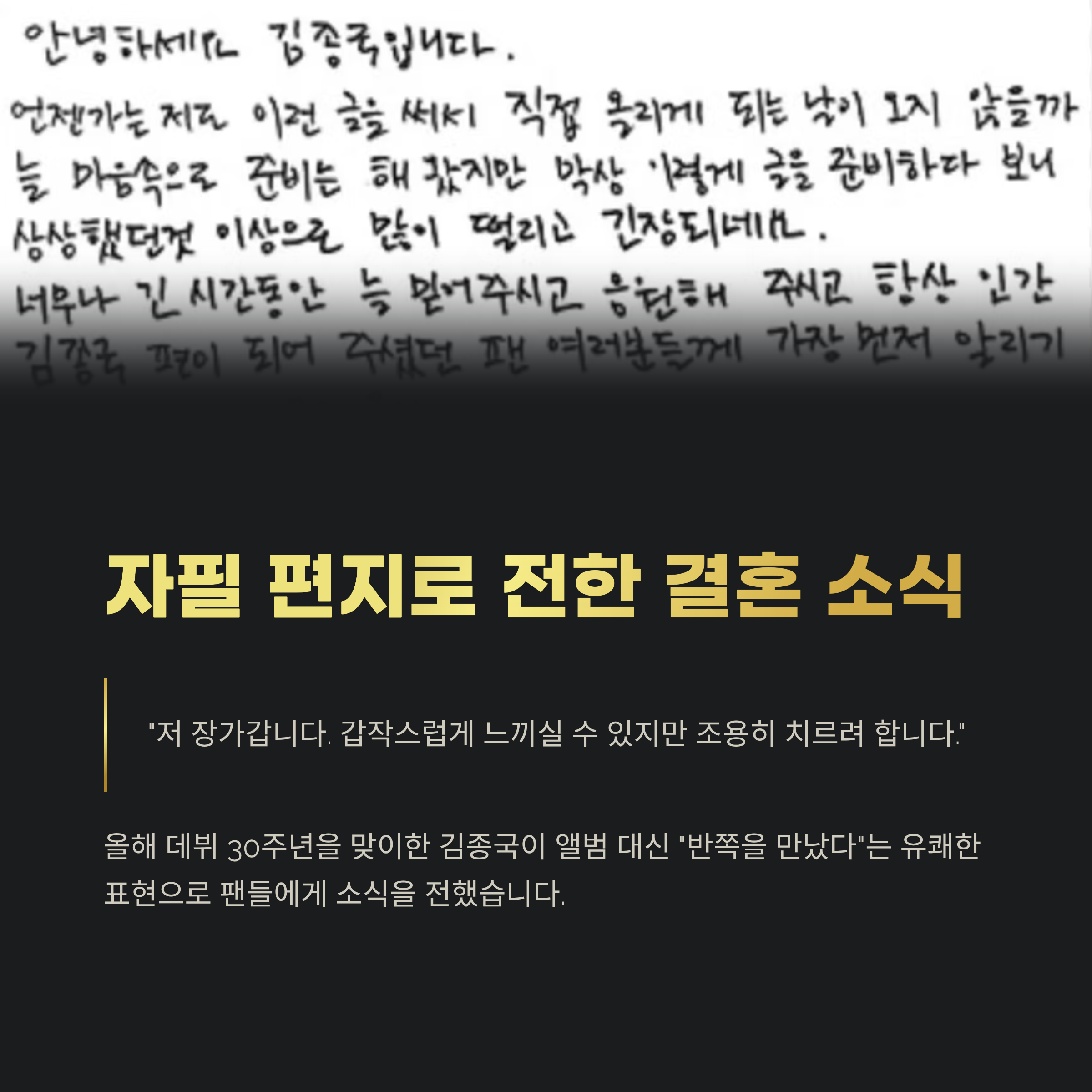 김종국 결혼 발표, 자필 편지로 전한 감동