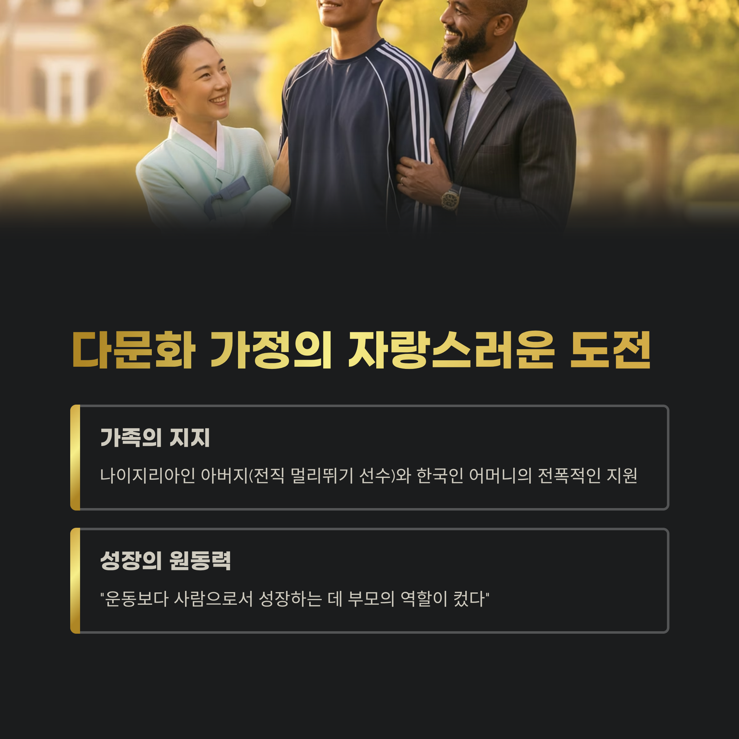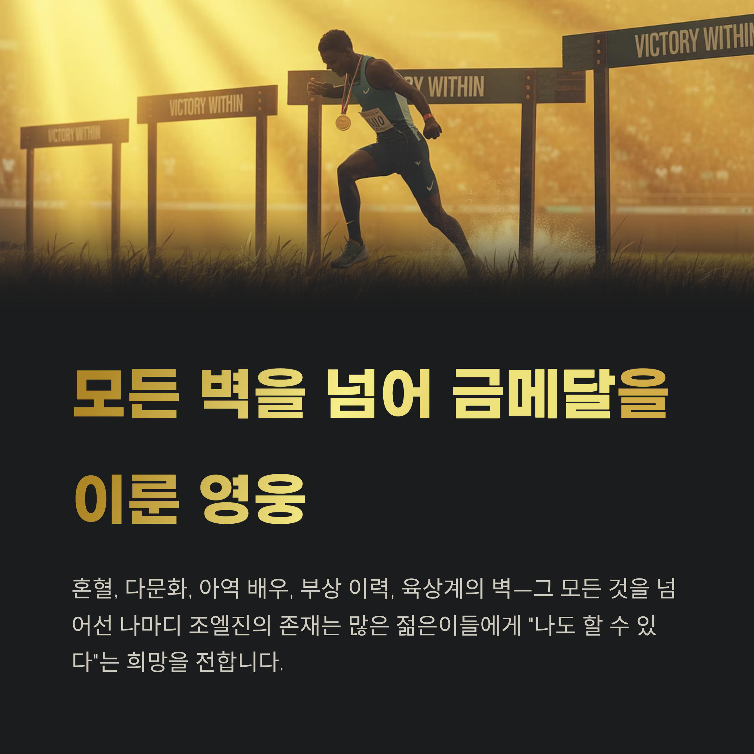 나마디 조엘진은 단순히 빠른 선수에 그치지 않습니다. 혼혈, 다문화, 아역 배우, 부상 이력, 육상계의 벽—그 모든 것을 넘고 금메달을 이뤄낸 인물입니다.