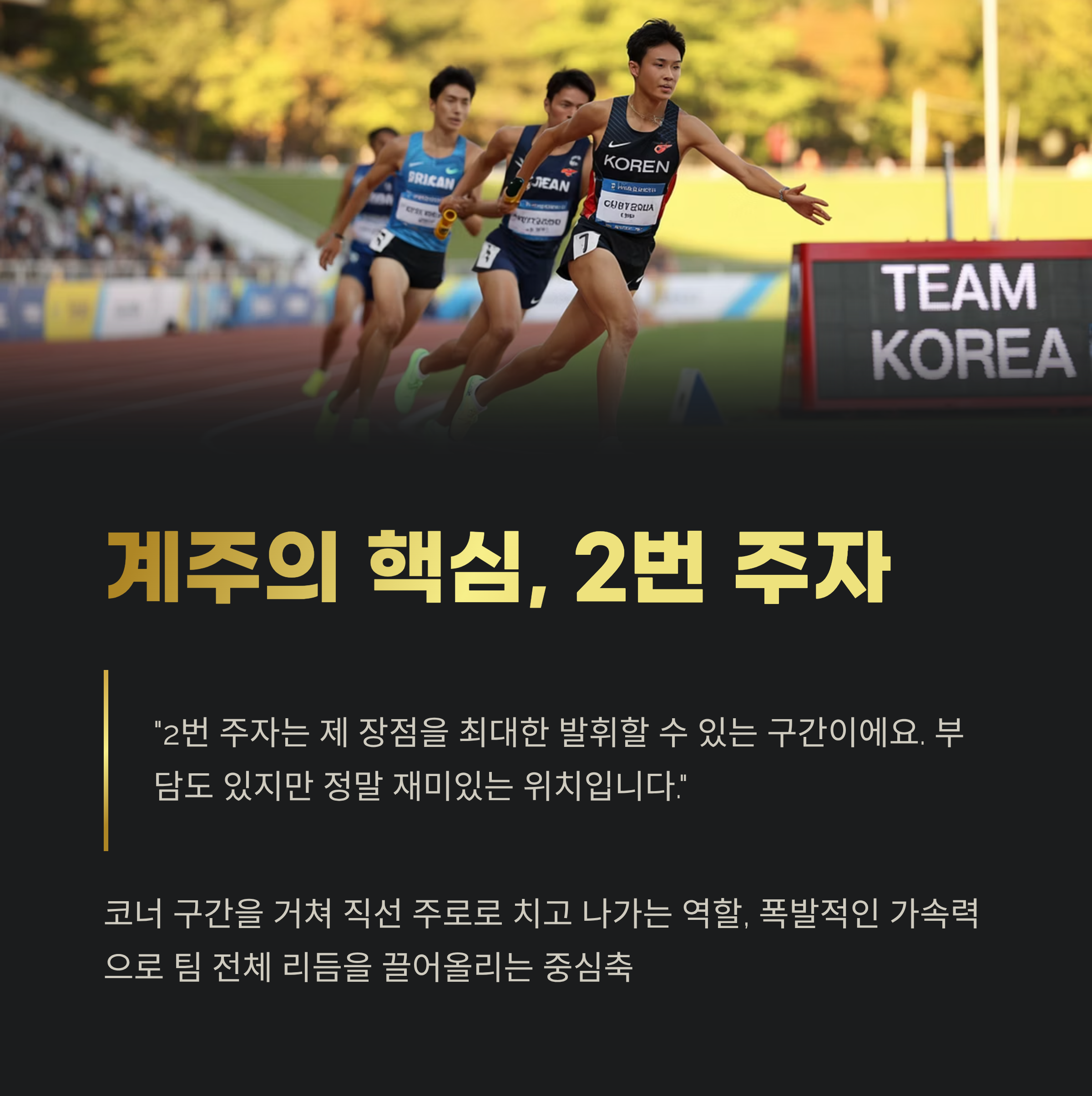 “2번 주자는 제 장점을 최대한 발휘할 수 있는 구간이에요. 부담도 있지만 정말 재미있는 위치입니다.”