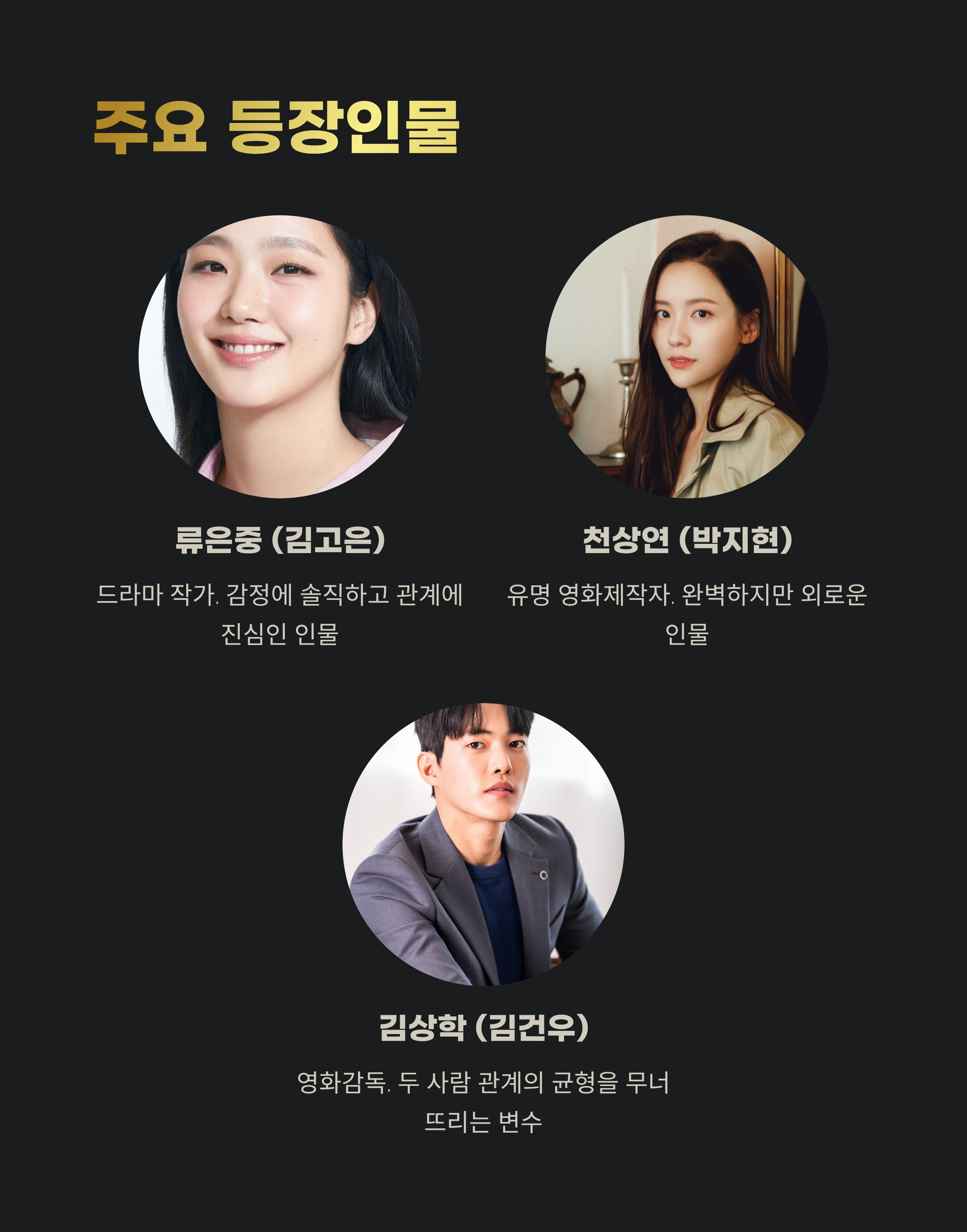 천상연 박지현 유명 영화제작자. 은중과는 초등학교 시절부터 함께해 온 친구. 완벽하지만 외로운 인물.