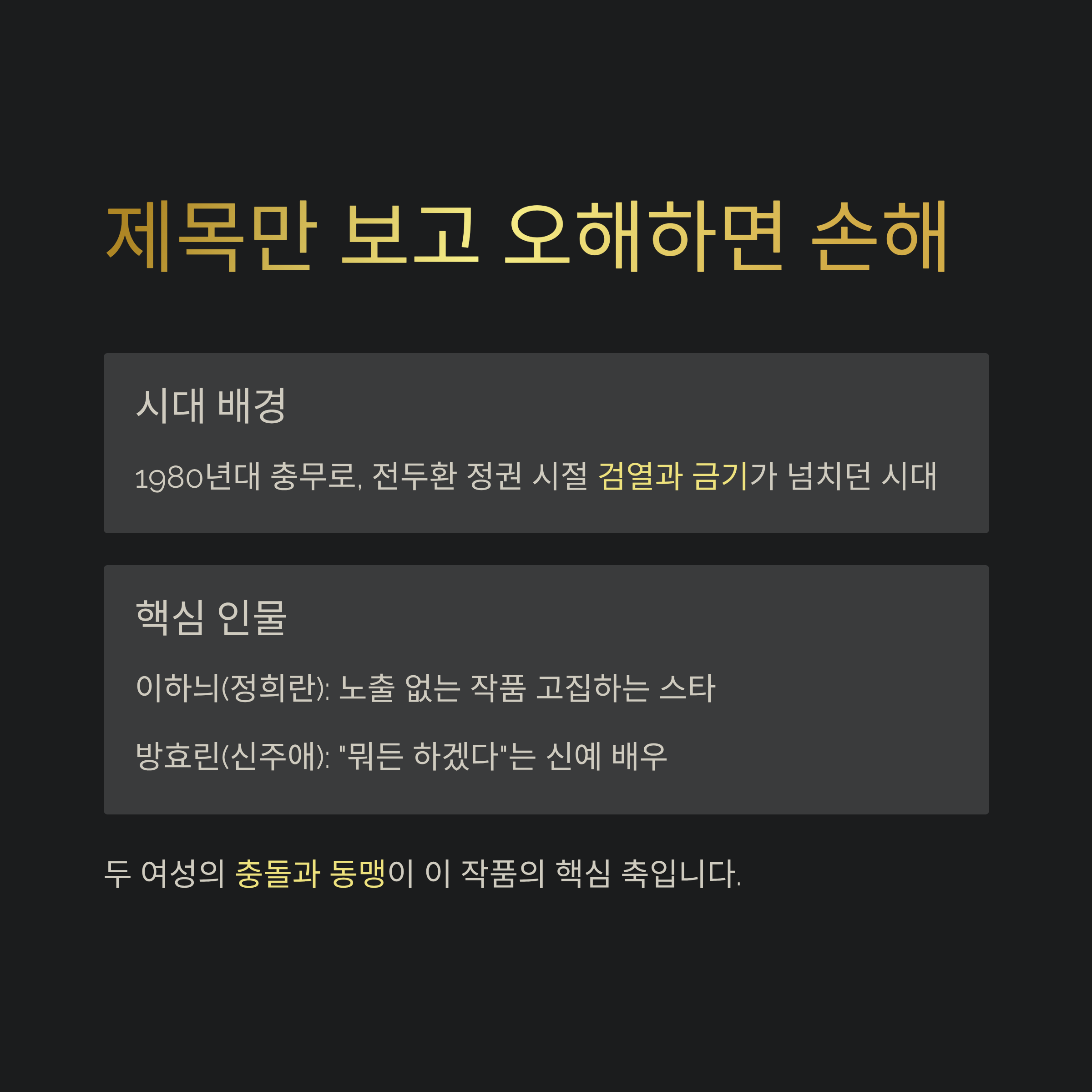 1980년대 충무로. 전두환 정권 시절, 검열과 금기가 넘치던 그 시대.