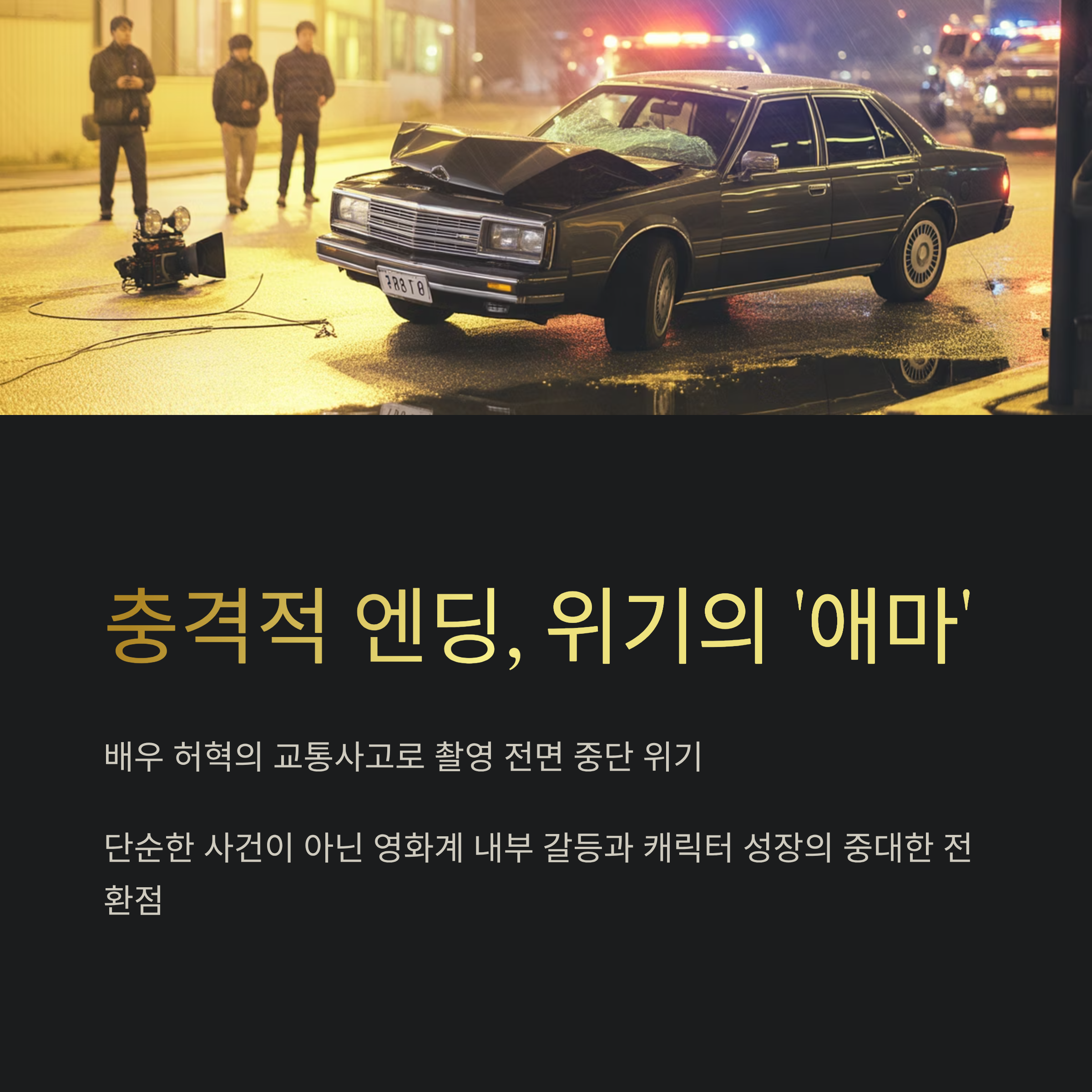 2회 마지막 장면에서 배우 허혁이 교통사고로 중태에 빠지면서 애마부인 촬영이 전면 중단 위기에 처합니다. 이는 단순한 사건이 아니라, 앞으로 전개될 영화계 내부의 갈등과 변화, 그리고 캐릭터들의 성장에 중대한 전환점이 될 것으로 보입니다.