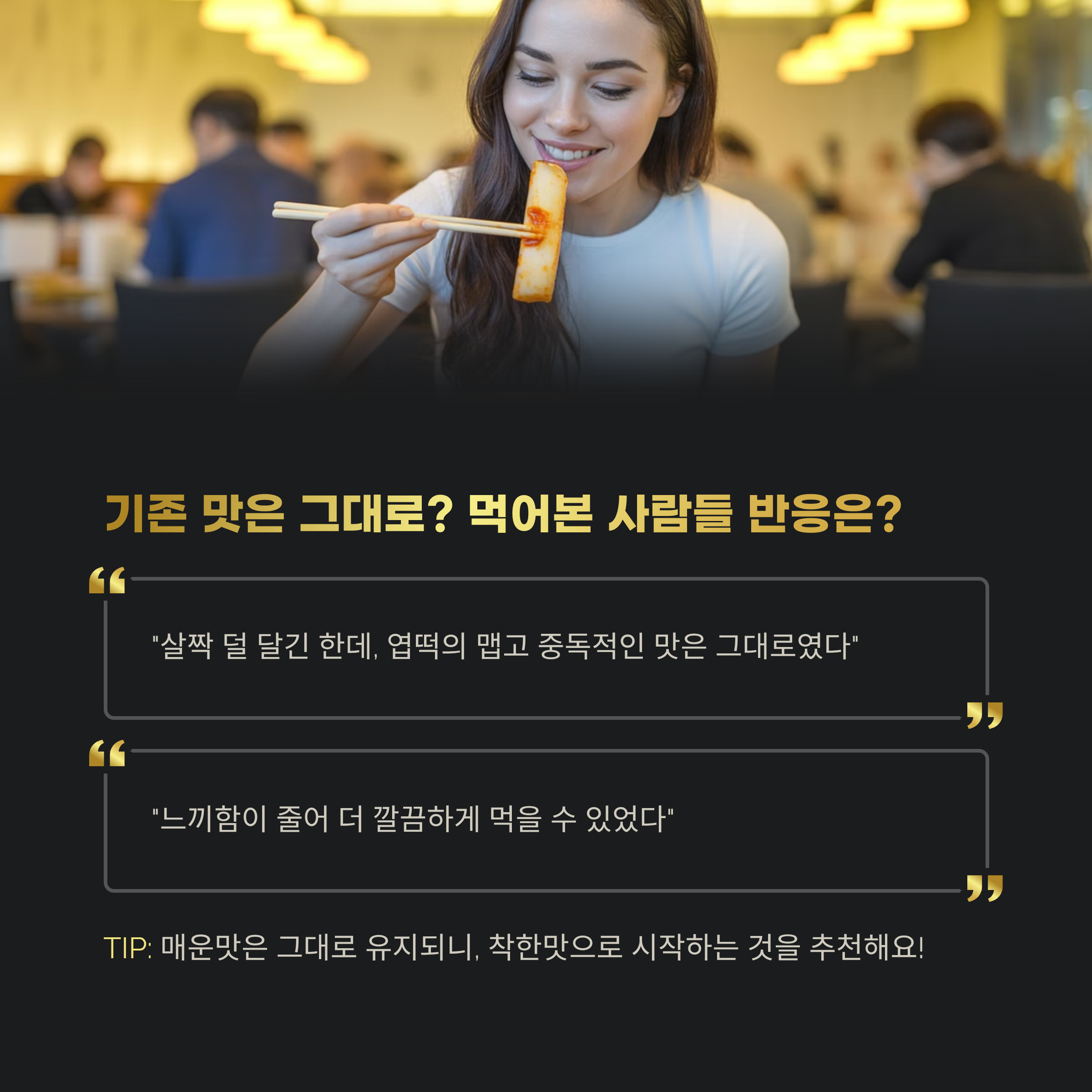 "살짝 덜 달긴 한데, 엽떡의 맵고 중독적인 맛은 그대로였다", "느끼함이 줄어 더 깔끔하게 먹을 수 있었다"는 평이 많았어요.