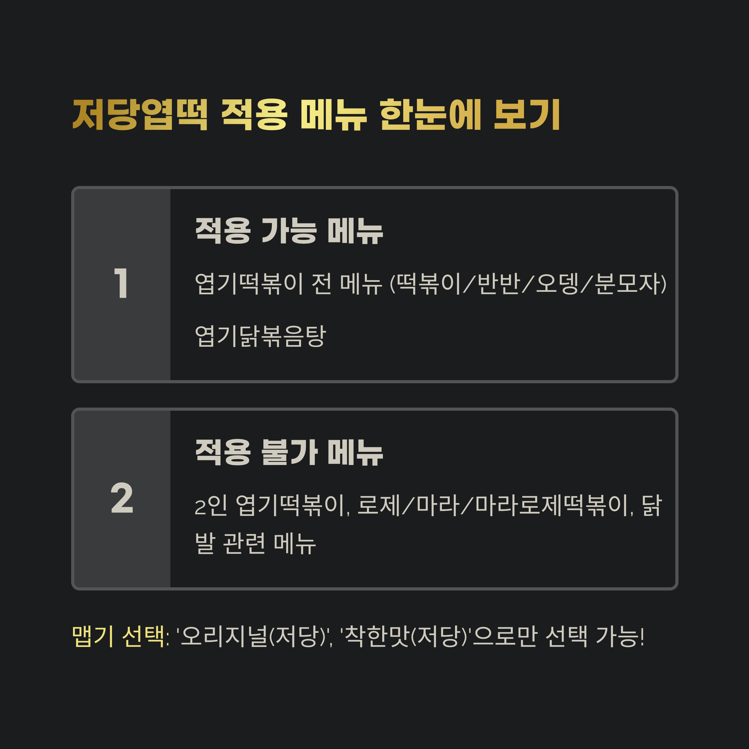 2. 어떤 메뉴에 적용될까? 저당엽떡 적용 메뉴 한눈에 보기