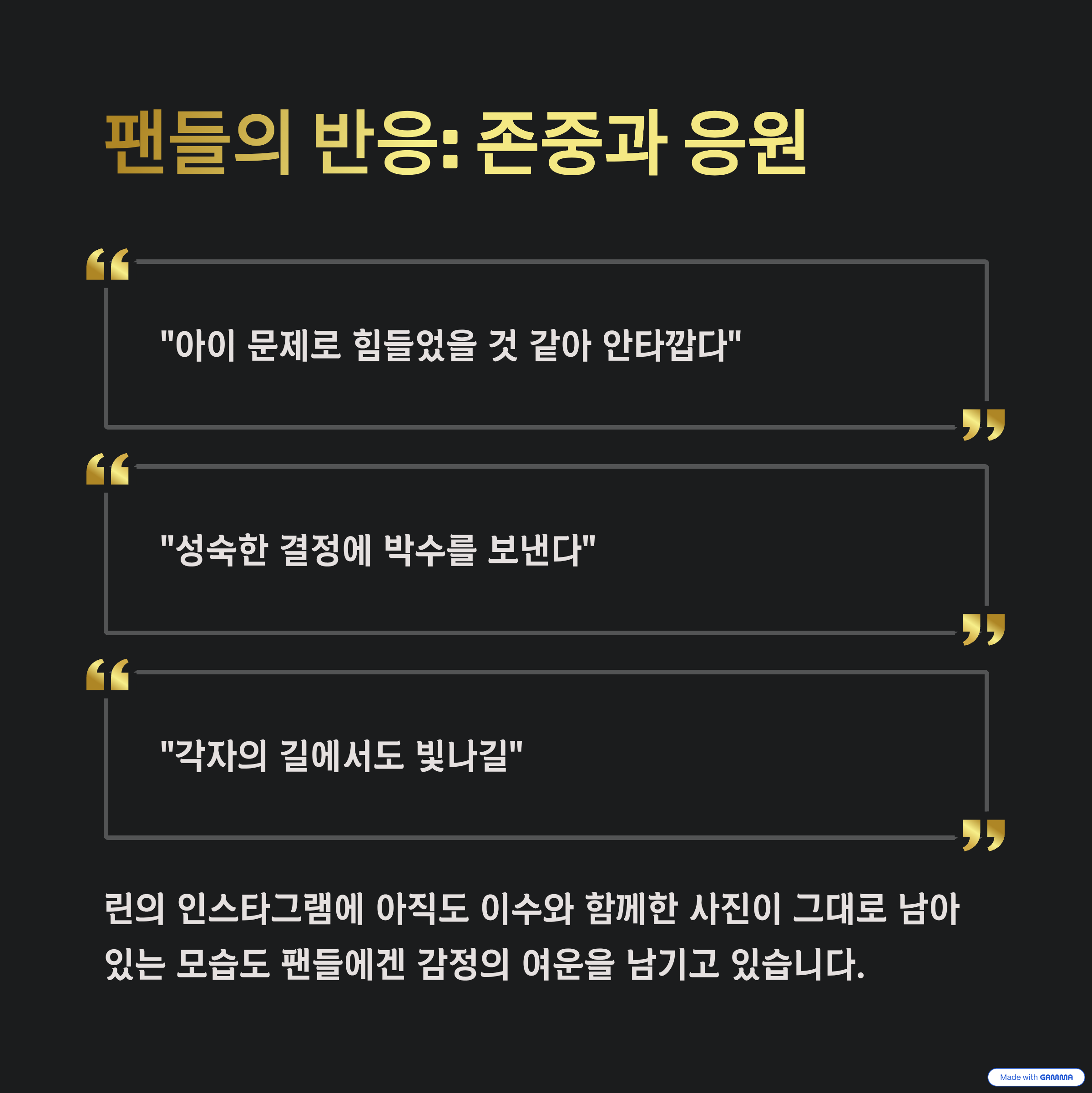 이혼 발표 이후, 린과 이수를 향한 팬들의 반응은 예상보다 차분했습니다.
