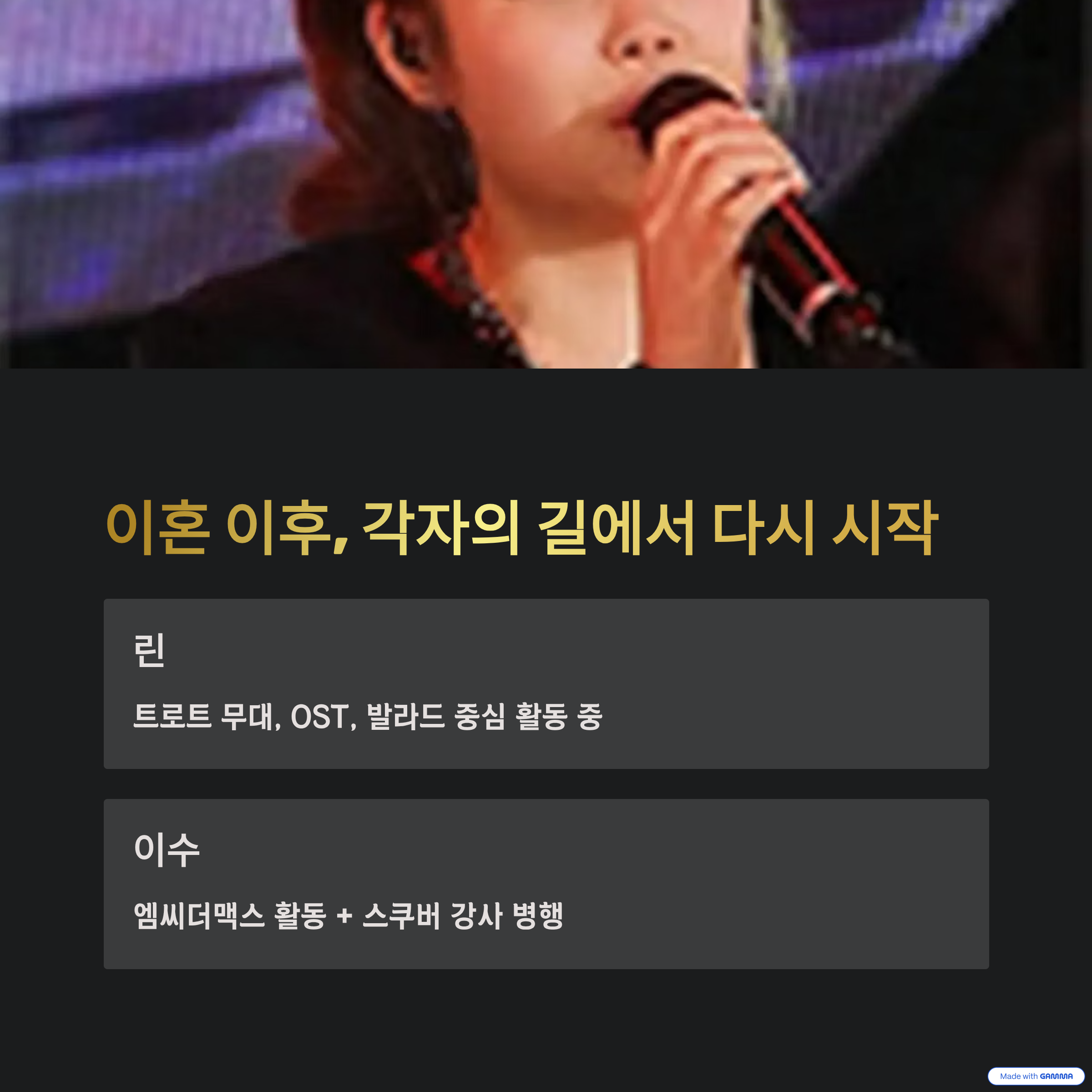 가수 린과 엠씨더맥스 이수가 결혼 11년 만에 합의 이혼 소식을 전하며 팬들과 대중에게 깊은 여운을 남기고 있습니다. 화려한 음악적 동행과 함께 '연예계 모범 부부'로 여겨졌던 두 사람의 갑작스러운 결별에 자녀 문제, 과거 논란 등 여러 추측이 더해지고 있는데요. 이번 글에서는 이들의 이혼 배경과 대중의 반응, 그리고 진짜 의미에 대해 차분히 짚어보겠습니다.