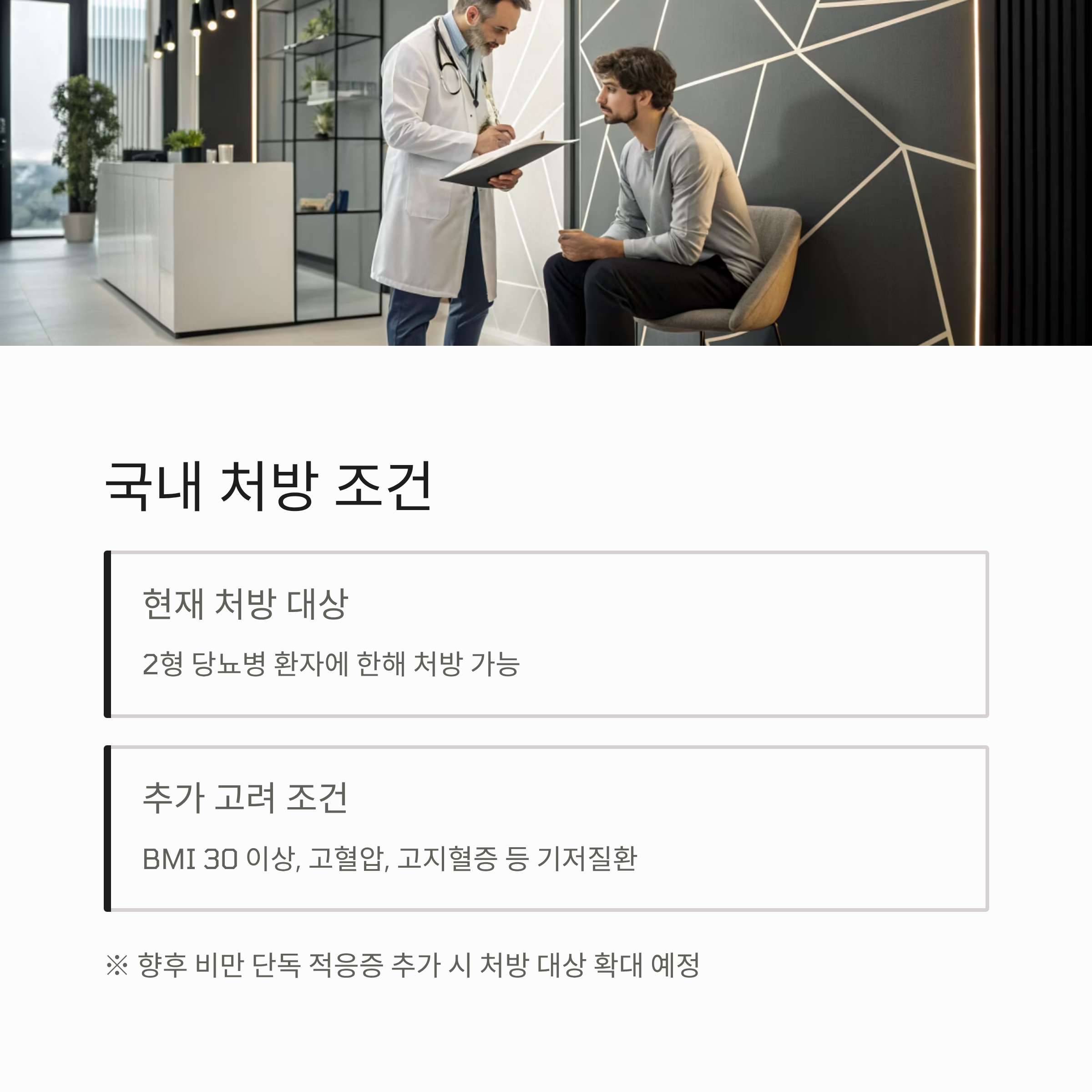 ※ 향후 비만 단독 적응증이 추가되면 처방 대상이 확대될 전망입니다.