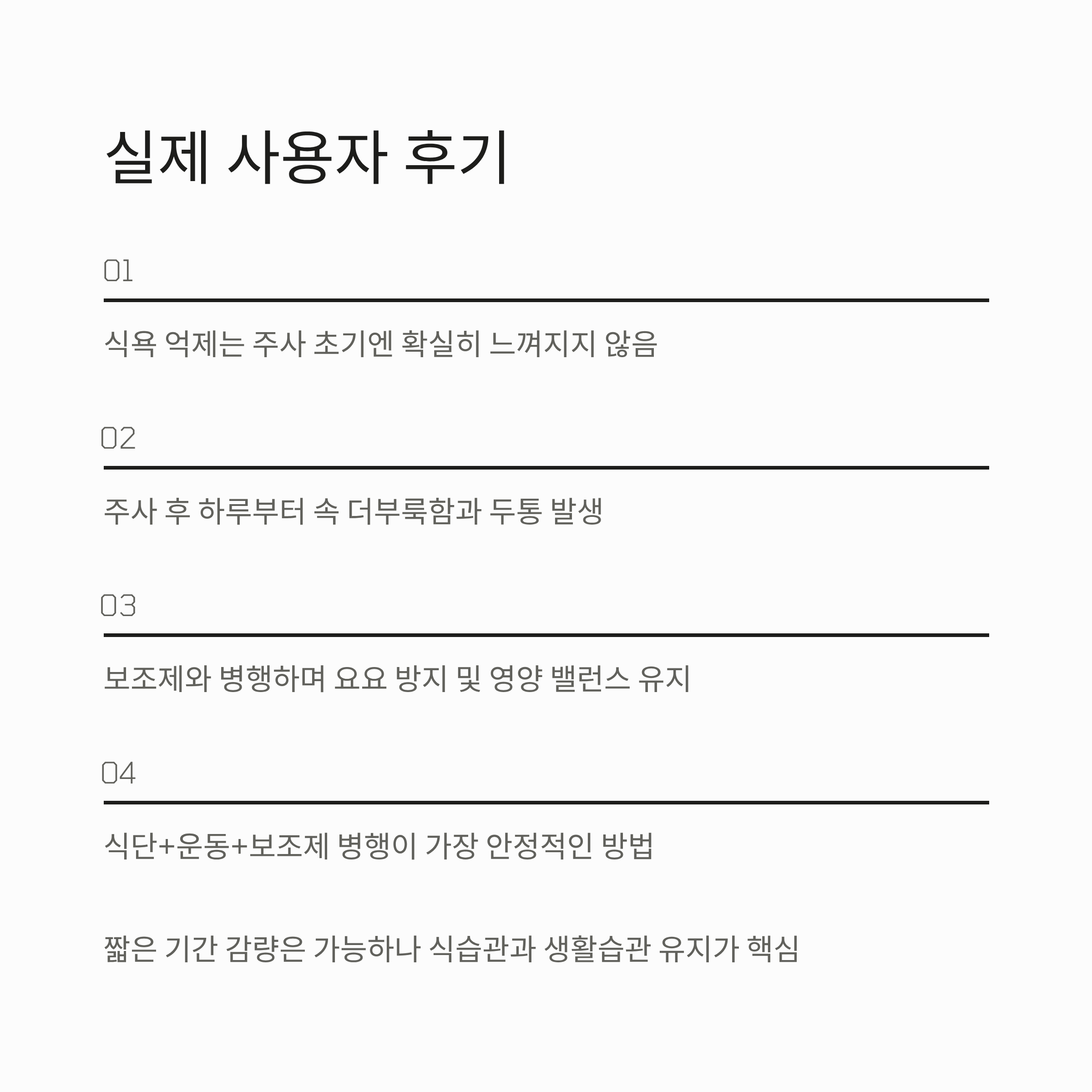 실제 사용자 후기: 식욕억제보단 위장 불편감 먼저 느껴져