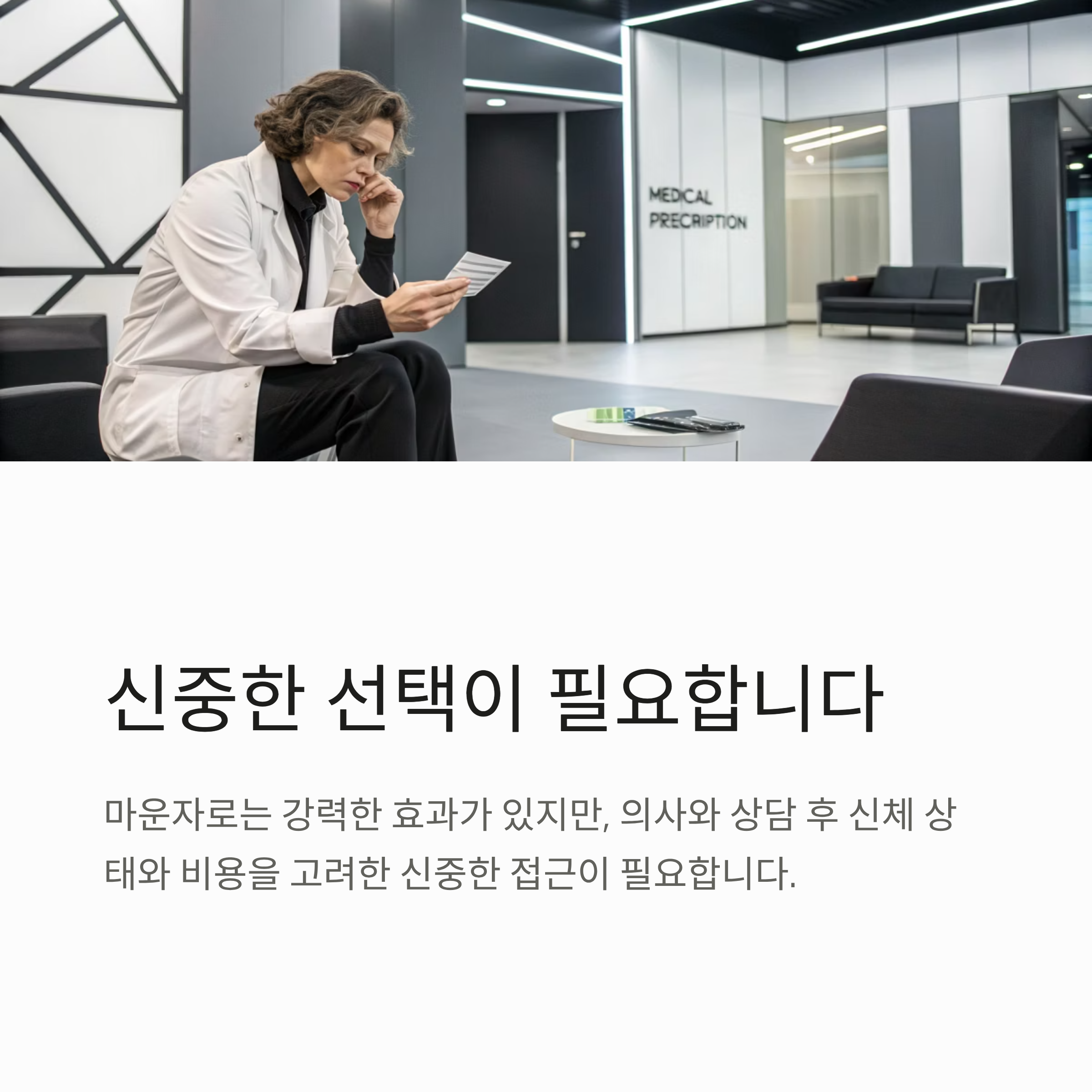 의사의 진단과 함께 신체 상태와 비용 부담까지 고려한 신중한 접근이 필요합니다.