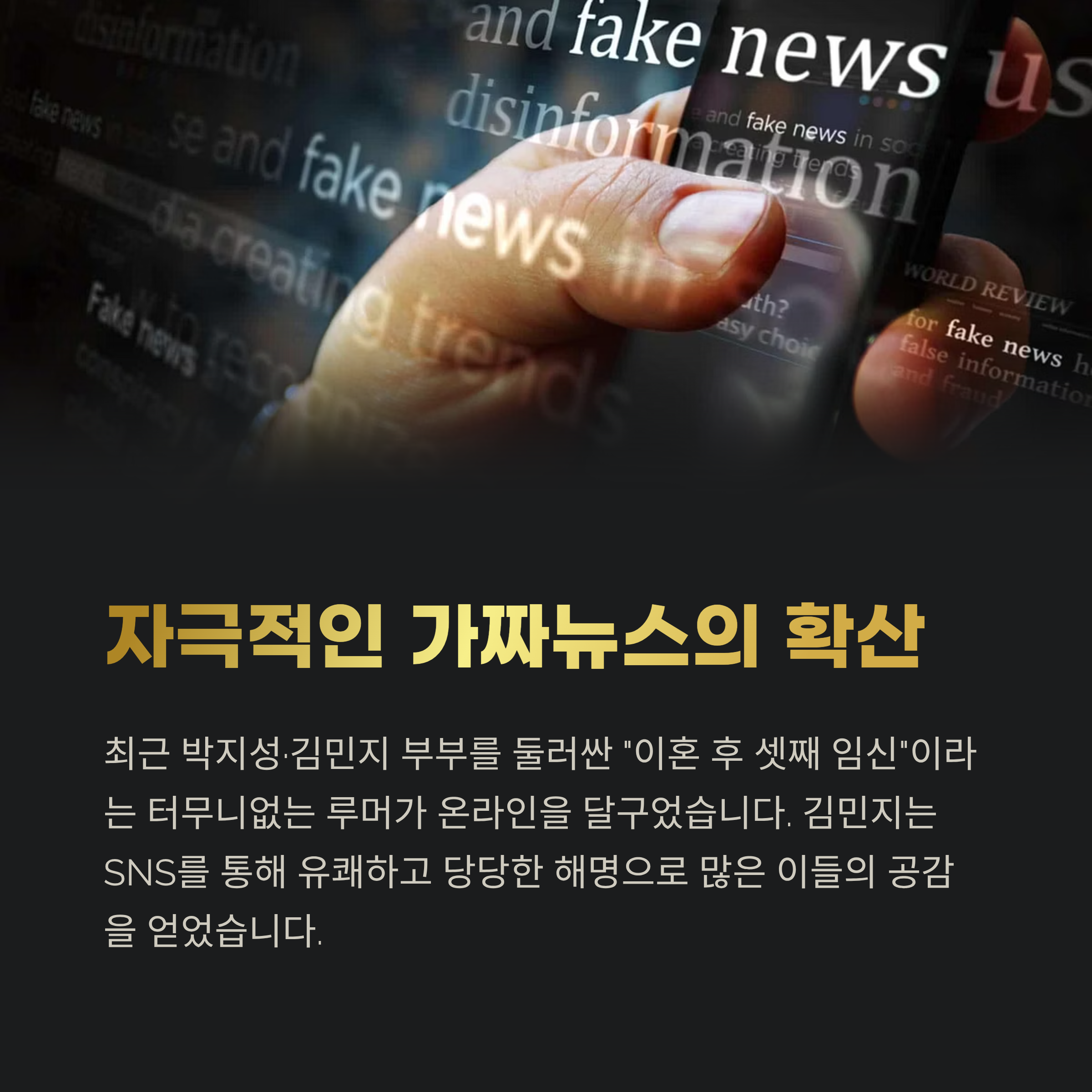 결국 박지성·김민지 부부를 향한 가짜뉴스는 한 편의 자극적인 픽션에 불과했습니다.