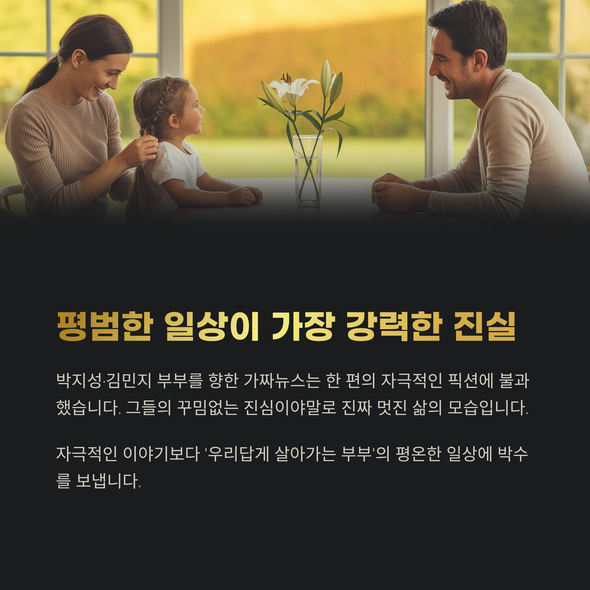 이제는 자극적인 이야기보다 ‘우리답게 살아가는 부부’의 평온한 일상에 더 많은 박수가 필요한 때입니다.