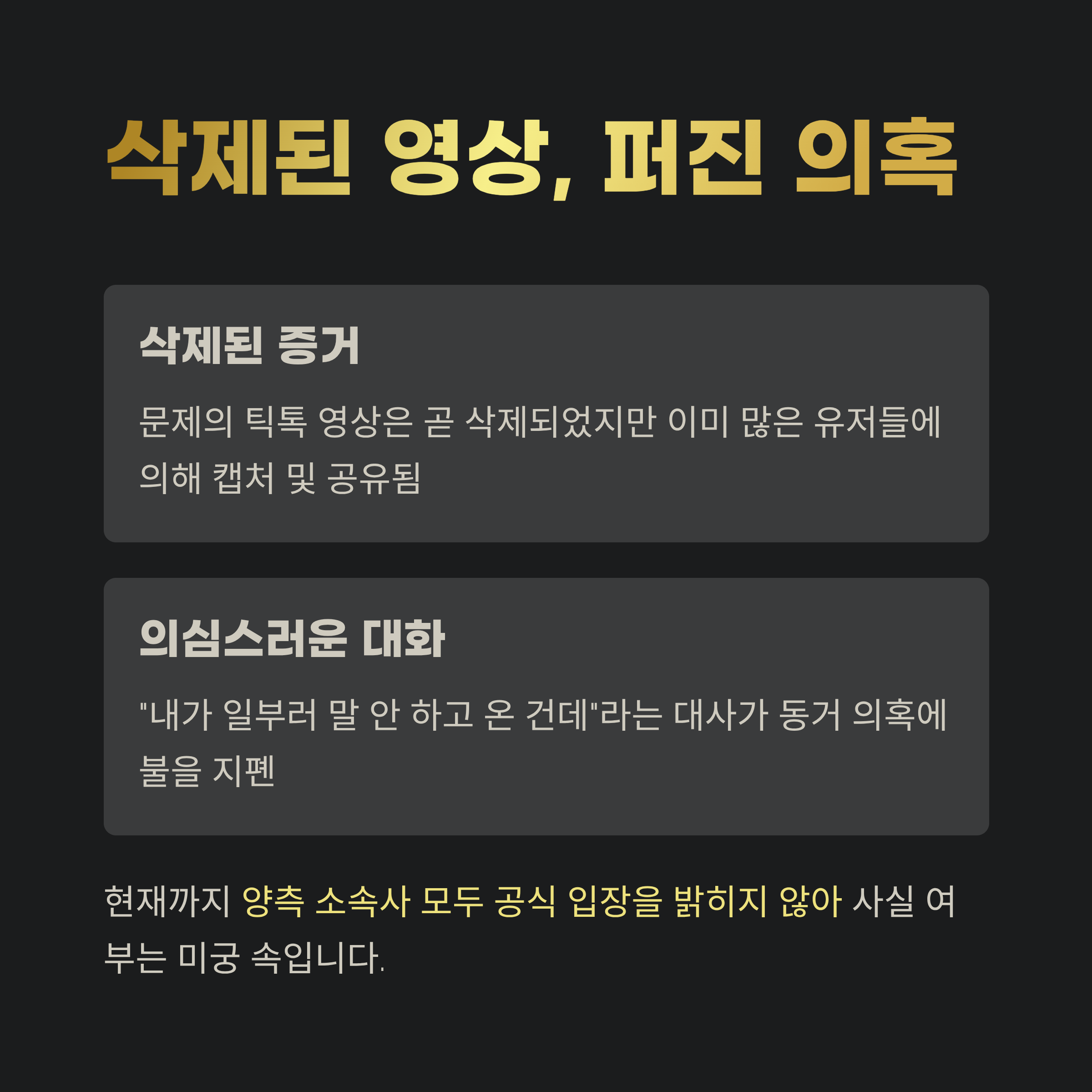 삭제된 영상, 그러나 퍼진 의혹은 여전