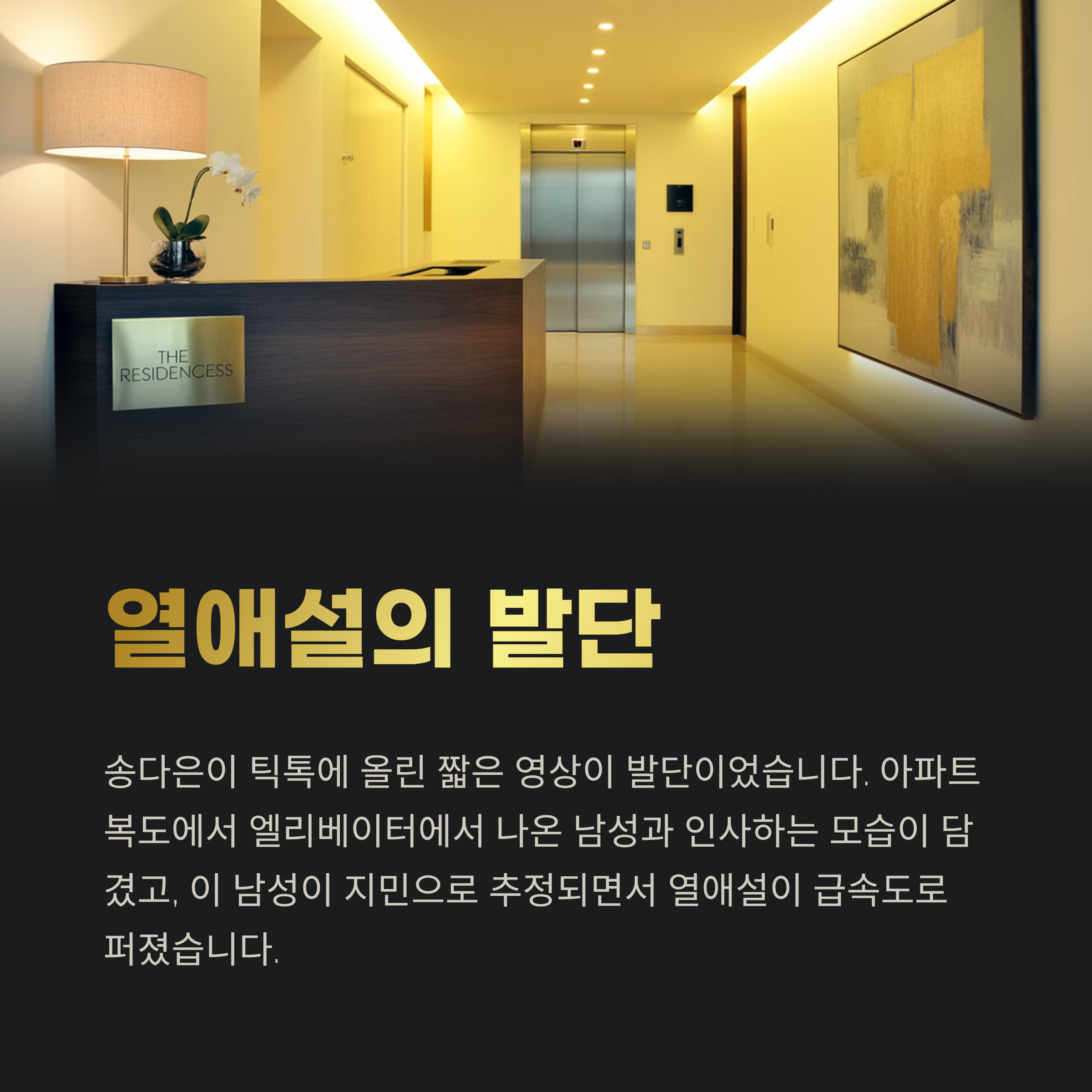 송다은이 자신의 틱톡 계정에 올린 짧은 영상 하나가 시작이었습니다. 영상 속 그녀는 아파트 복도에서 누군가를 기다리다, 엘리베이터에서 등장한 남성과 반갑게 인사했는데요. 이 남성이 지민으로 보인다는 의견이 확산되면서 열애설은 빠르게 번졌습니다. 심지어 배경이 지민의 거주지와 비슷하다는 주장까지 나오며 동거설까지 등장한 상황입니다.