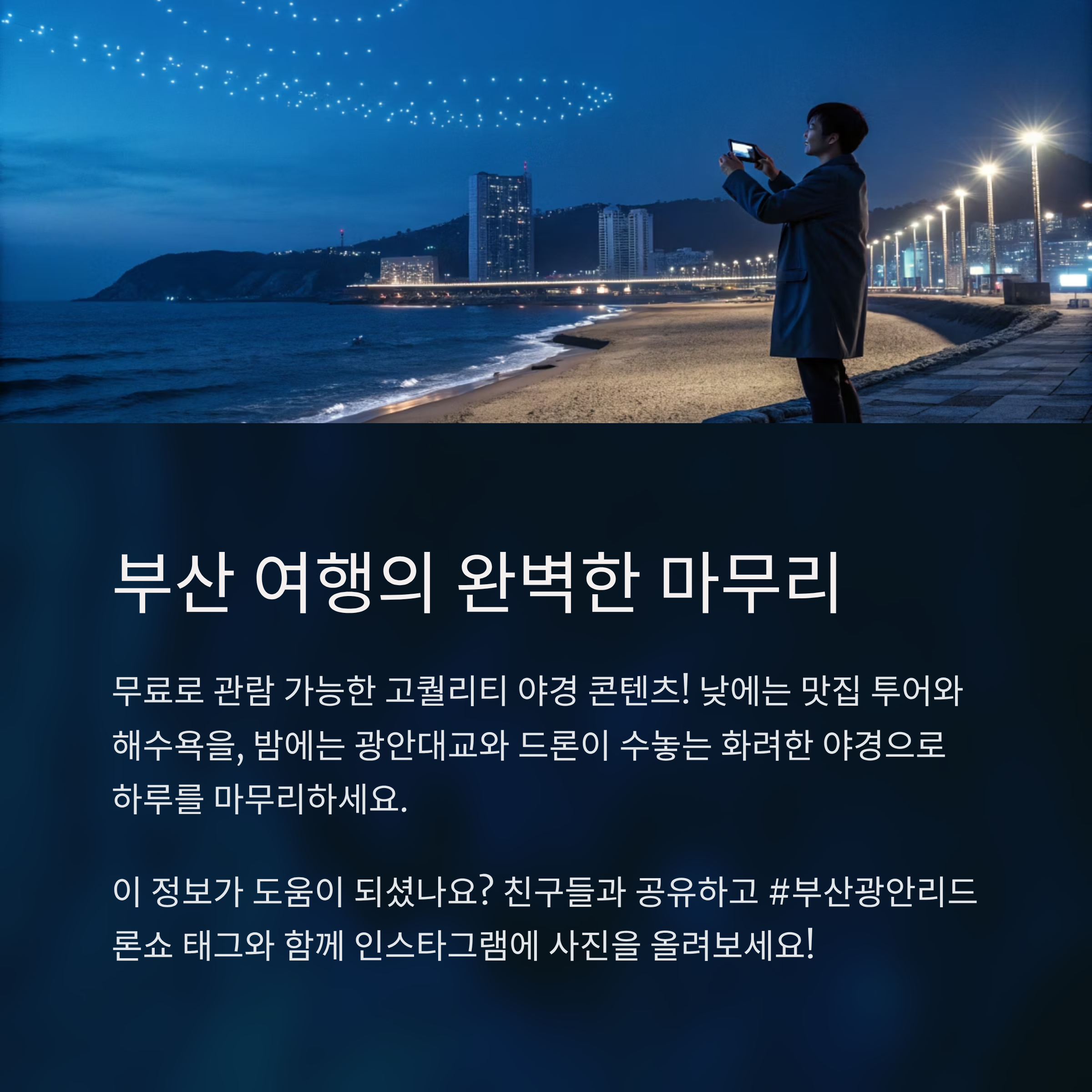 광안리 드론쇼는 무료로 관람 가능한 고퀄리티 야경 콘텐츠입니다.