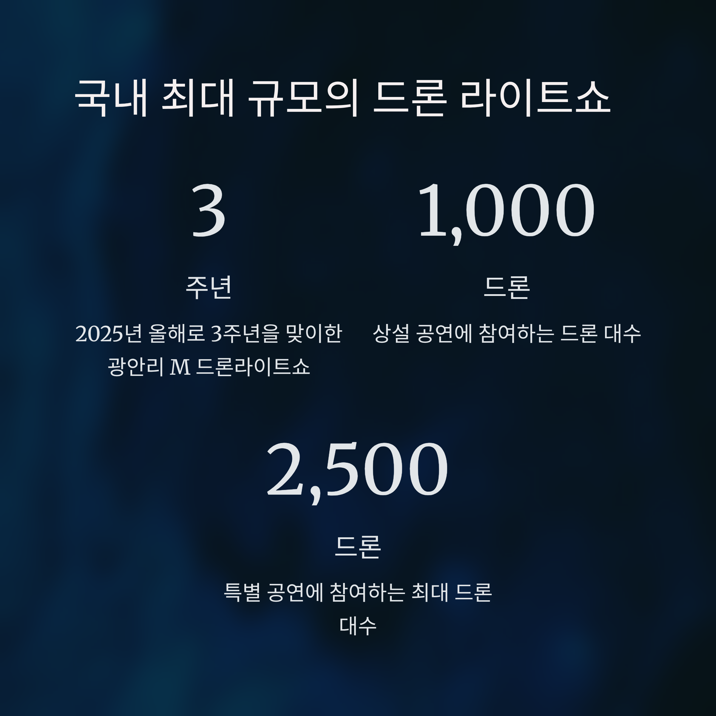 부산 수영구가 주최하고 있는 광안리 M 드론라이트쇼는 2025년 올해로 3주년을 맞이했습니다.
