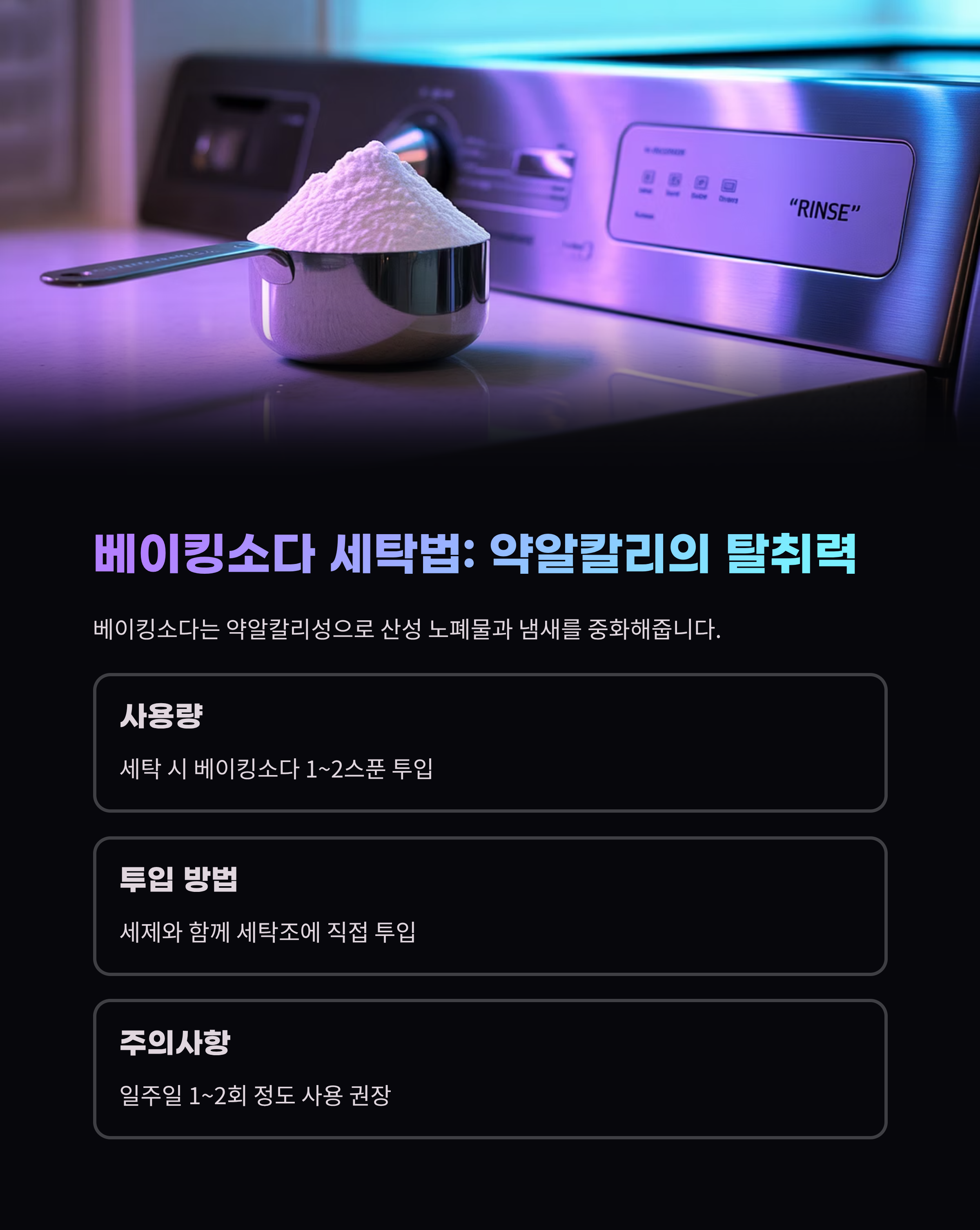| 사용량 | 세탁 시 베이킹소다 1~2스푼 |