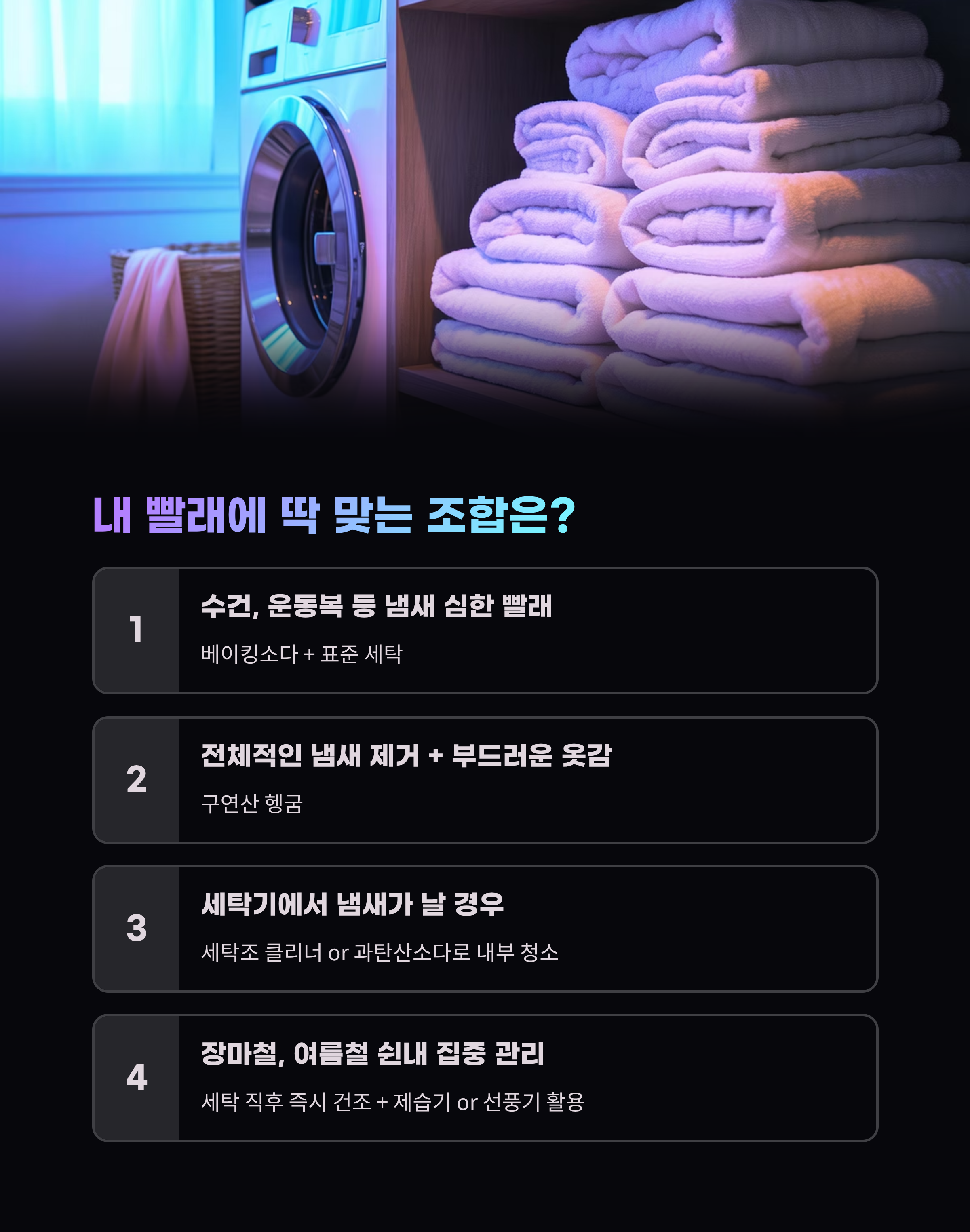 - 수건, 운동복 등 냄새 심한 빨래