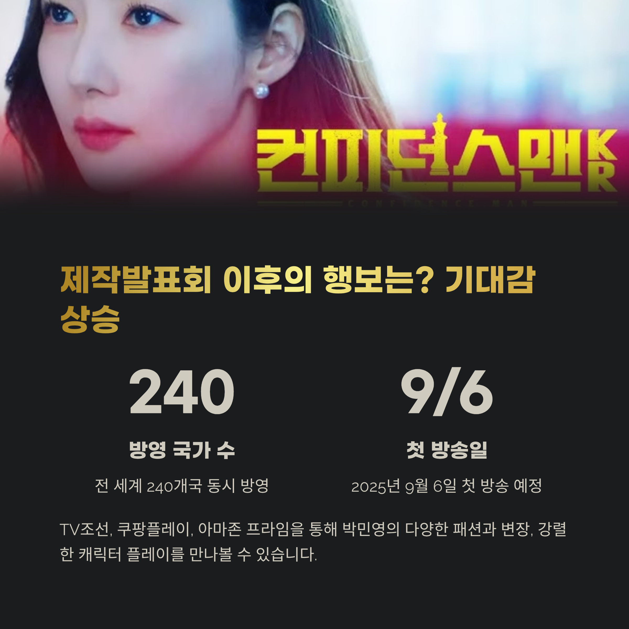 ‘컨피던스맨 KR’은 9월 6일 첫 방송 예정이며
