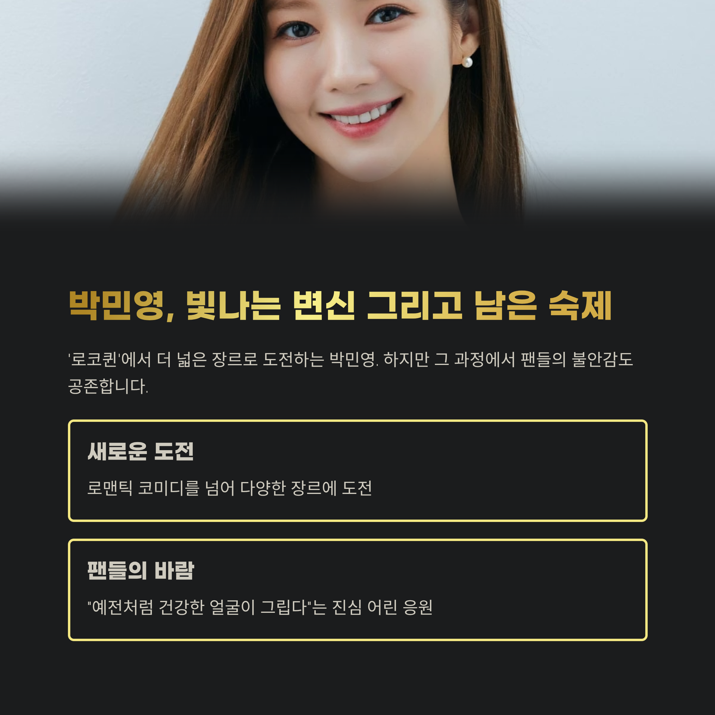 건강이 뒷받침될 때 진짜 박민영다운 매력이 빛을 발합니다.