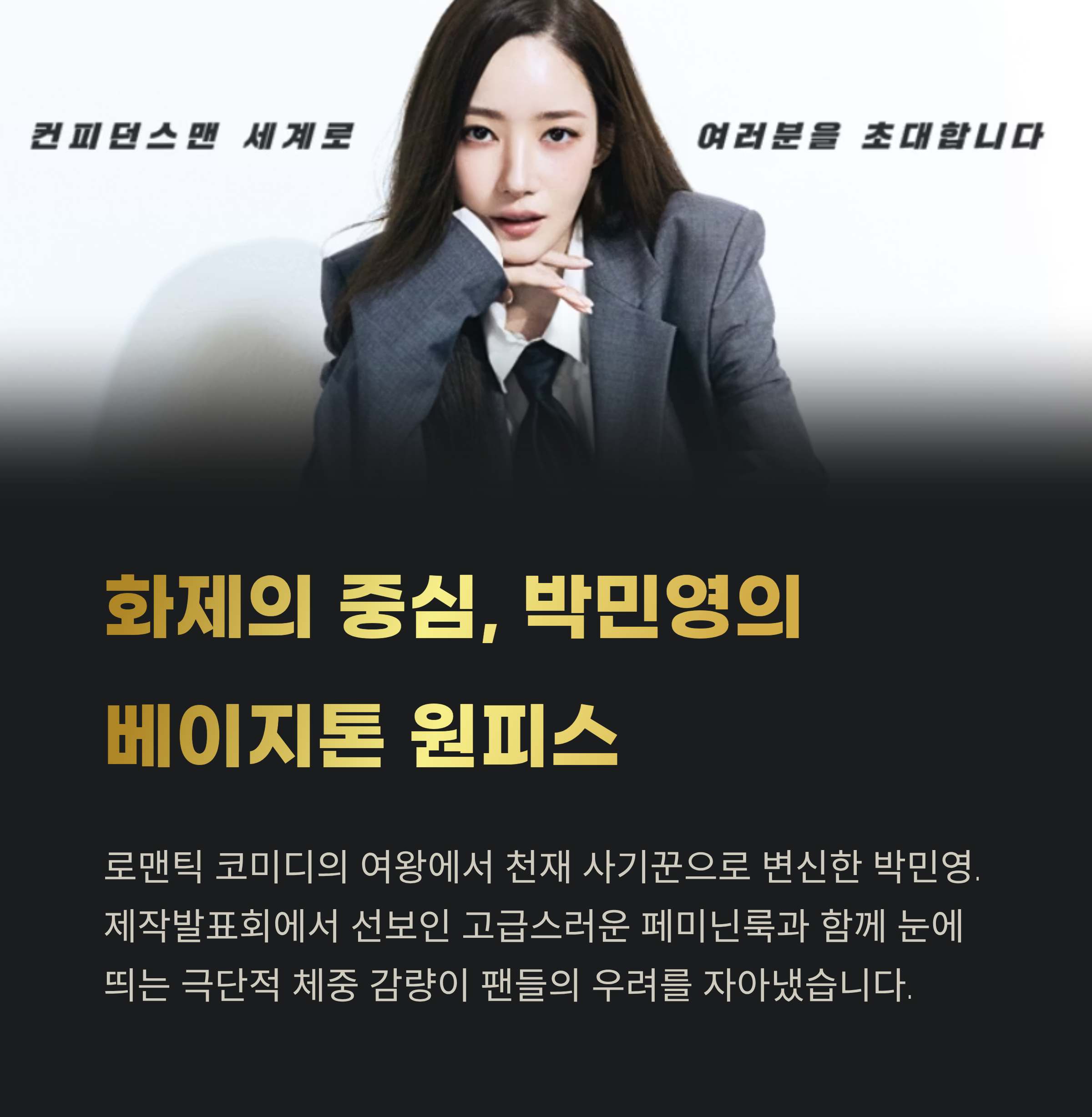 박민영의 말라버린 체형을 더 극적으로 드러냈다는 평가도 있습니다.