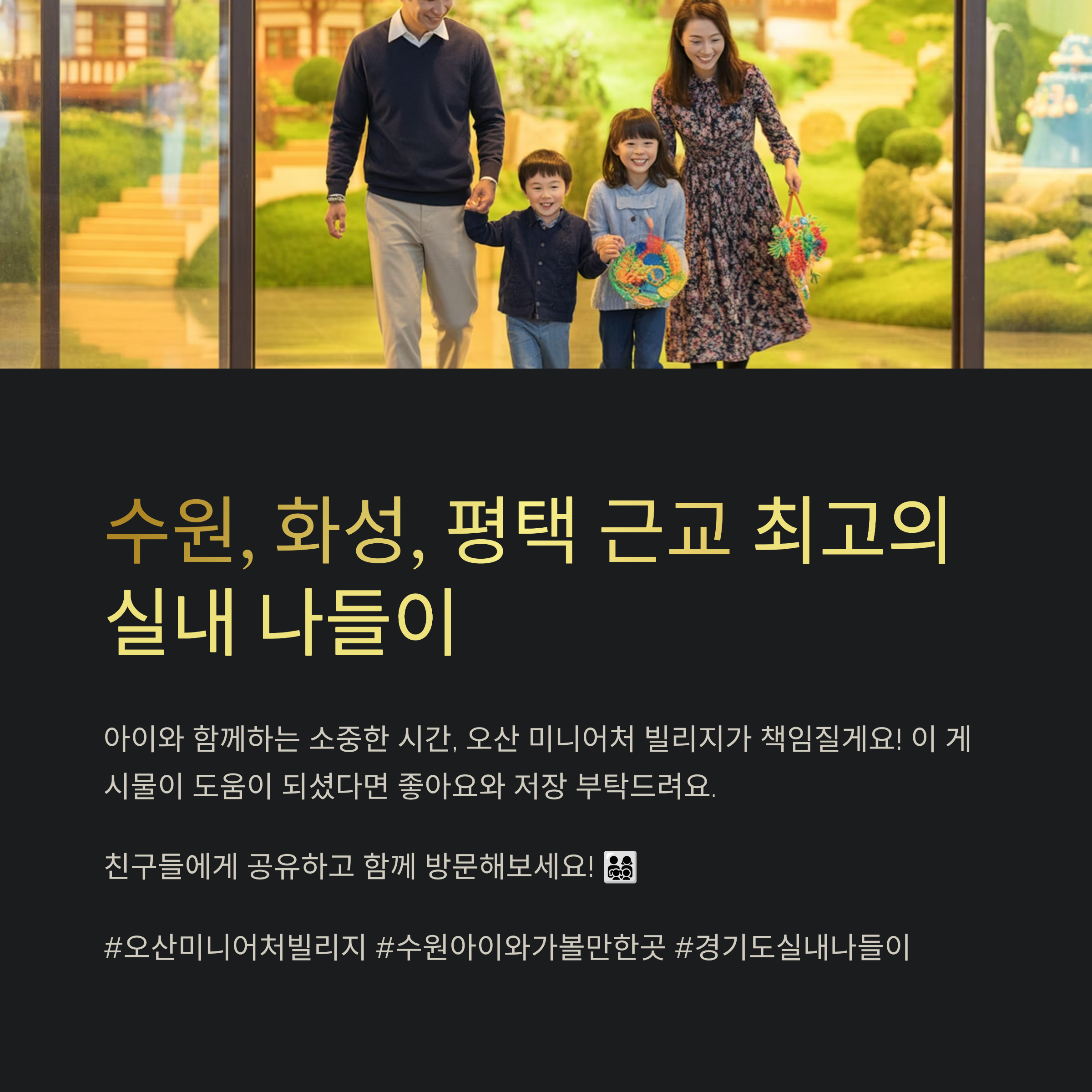 수원, 화성, 평택, 용인 근교 나들이 찾고 있다면 이곳은 한 번쯤 꼭 다녀와보세요. 아이와 함께하는 소중한 시간, 오산 미니어처 빌리지가 제대로 책임질 거예요.