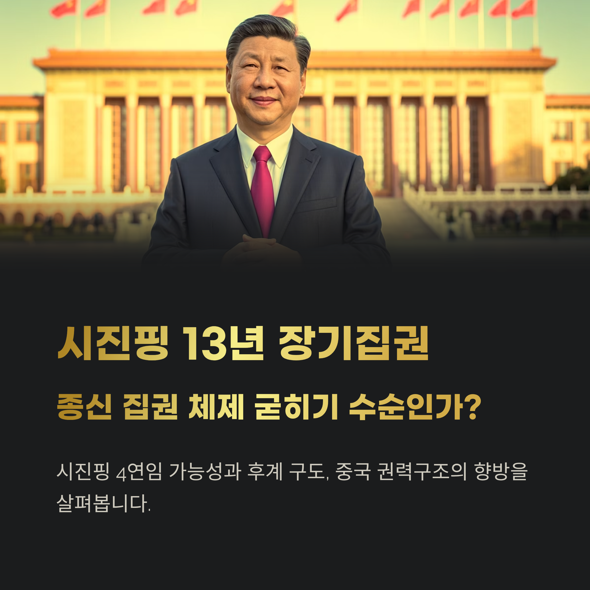 중국 공산당의 총서기직은 사실상 국가 권력의 정점입니다. 시진핑은 이미 3연임에 성공했고, 2027년 4연임도 무리 없이 가능하다는 평가가 많습니다. 후계자를 명확히 지명하지 않는 것도 그 가능성을 높이는 요인입니다.