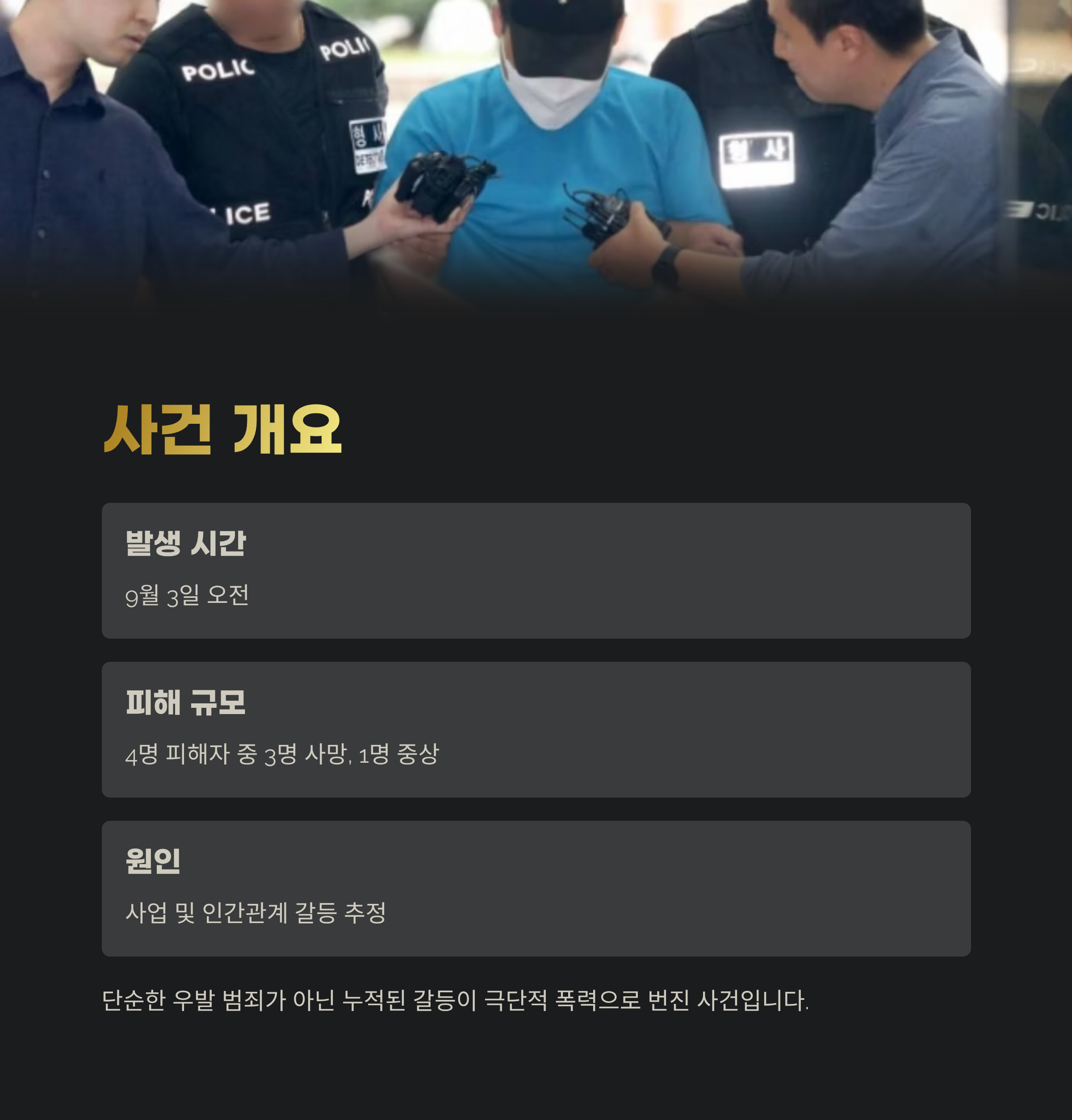 | 2025.9 | 신림동 | 3명 사망, 1명 중상 | 사업 갈등 |