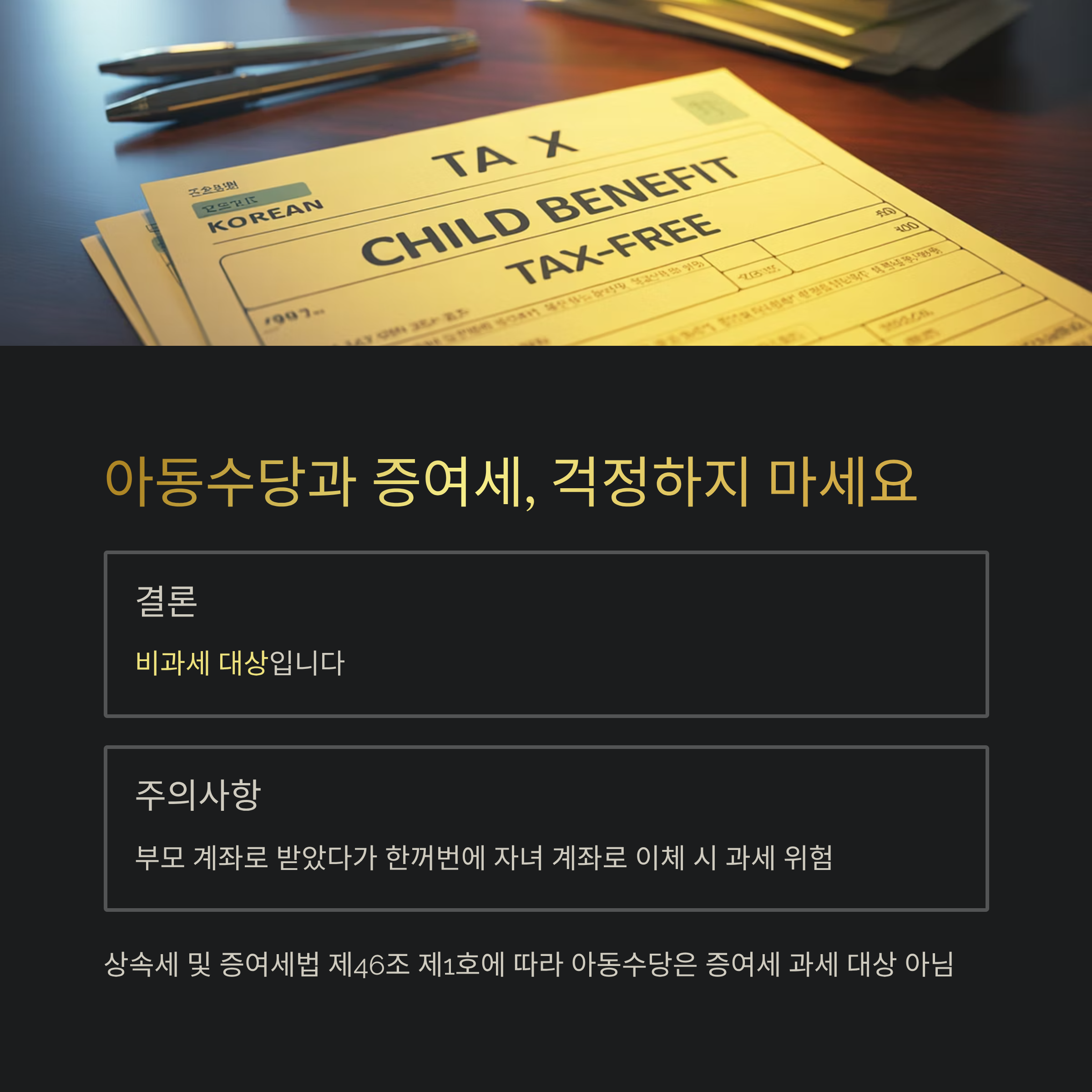 | 증여세 여부 | 자녀 명의 계좌로 수령 시 비과세 |