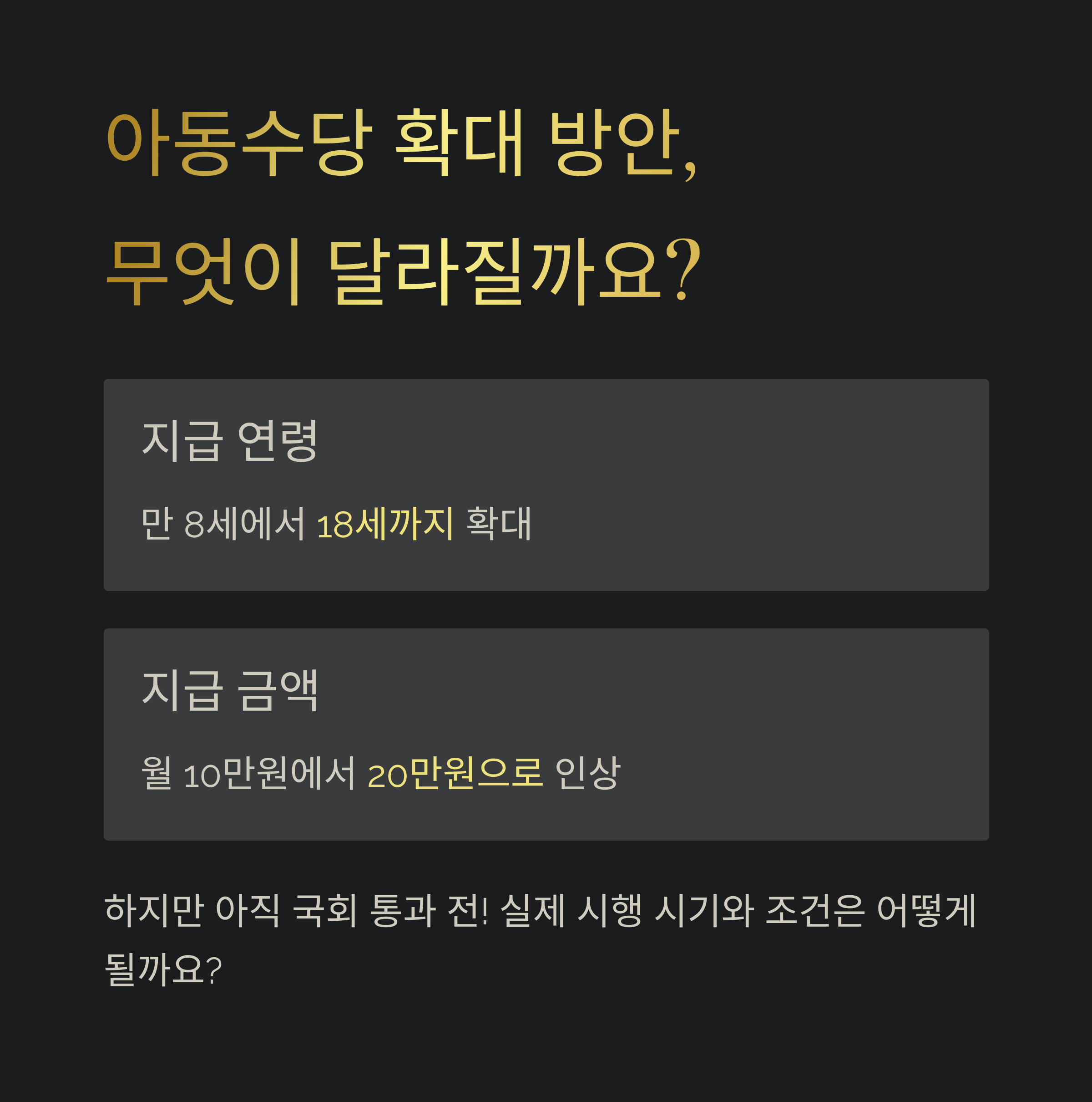 | 확대 논의 중인 내용 | 만 18세까지, 월 20만 원 |