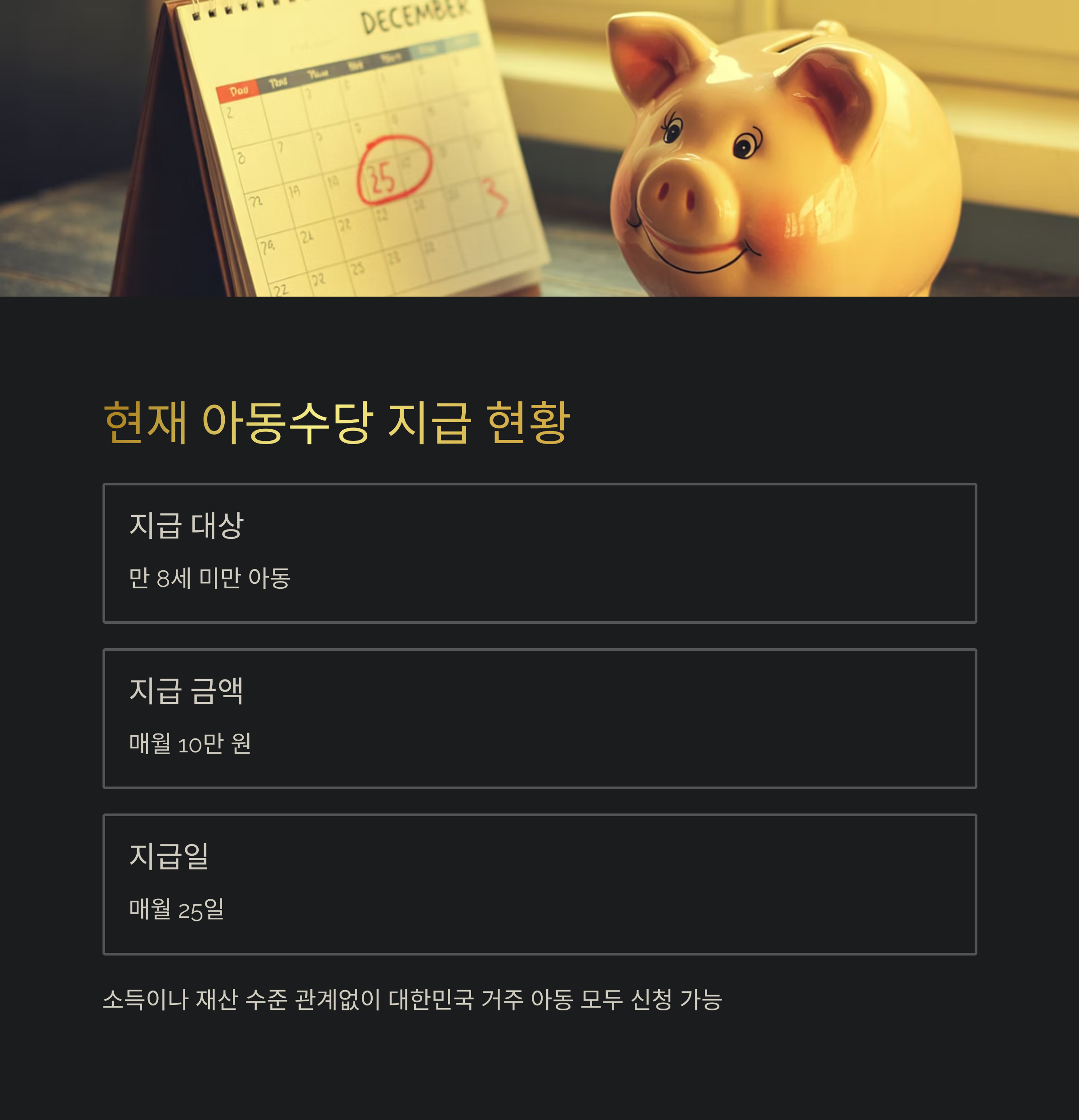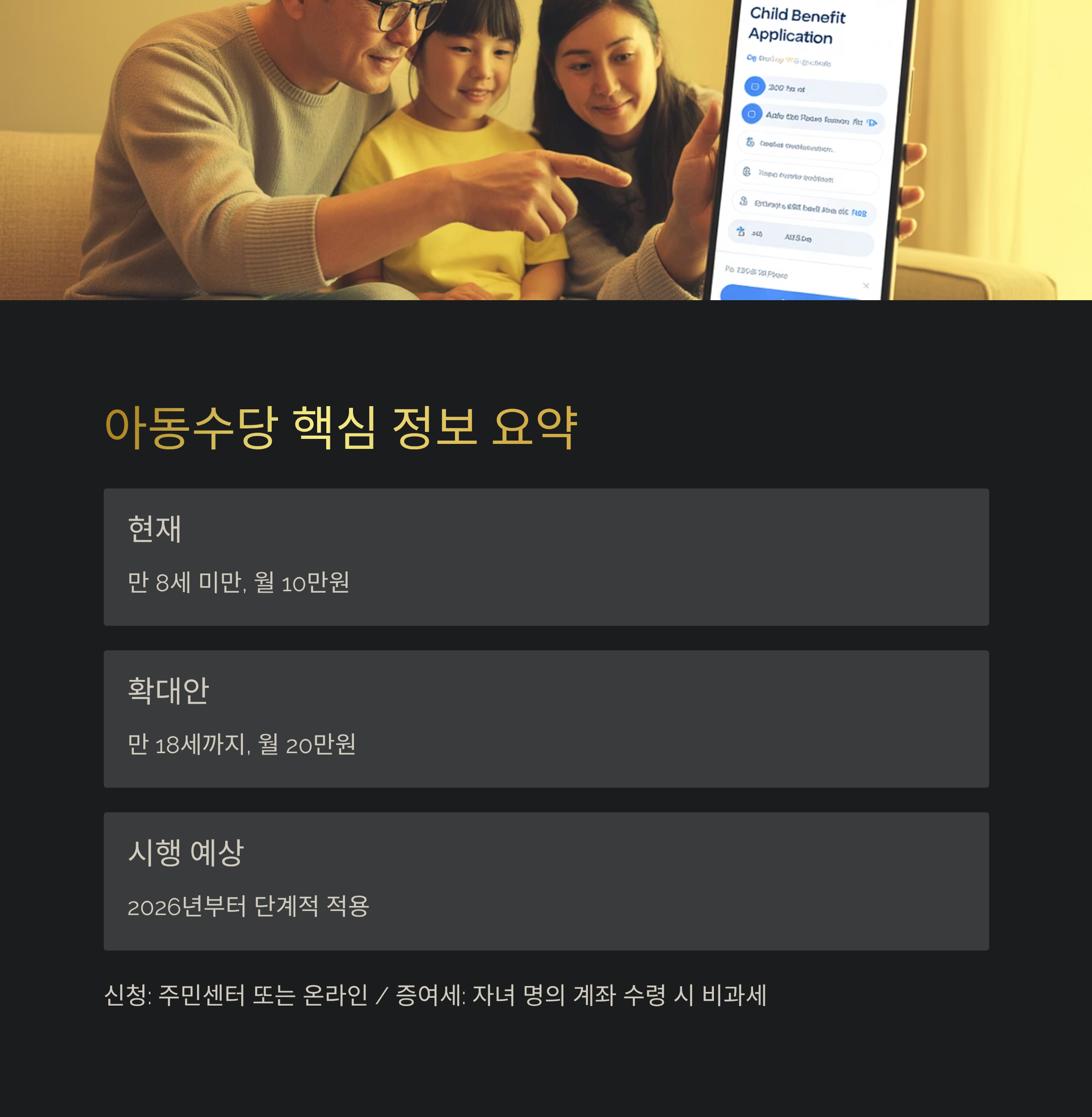 | 계좌 등록 | 자녀 명의 계좌로 직접 수당 수령 |