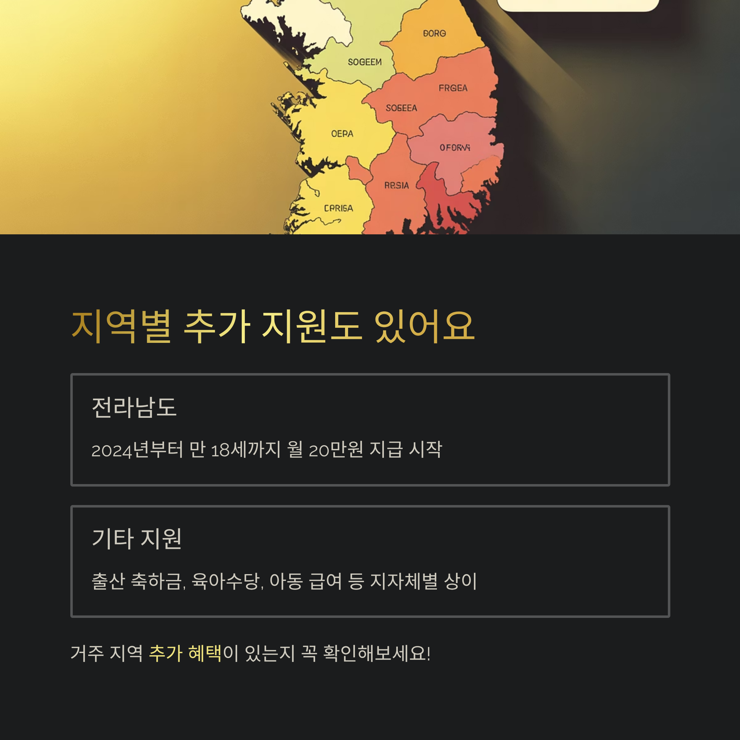 예를 들어 전라남도는 이미 2024년부터 만 18세까지 월 20만 원 지급을 시작했습니다.
