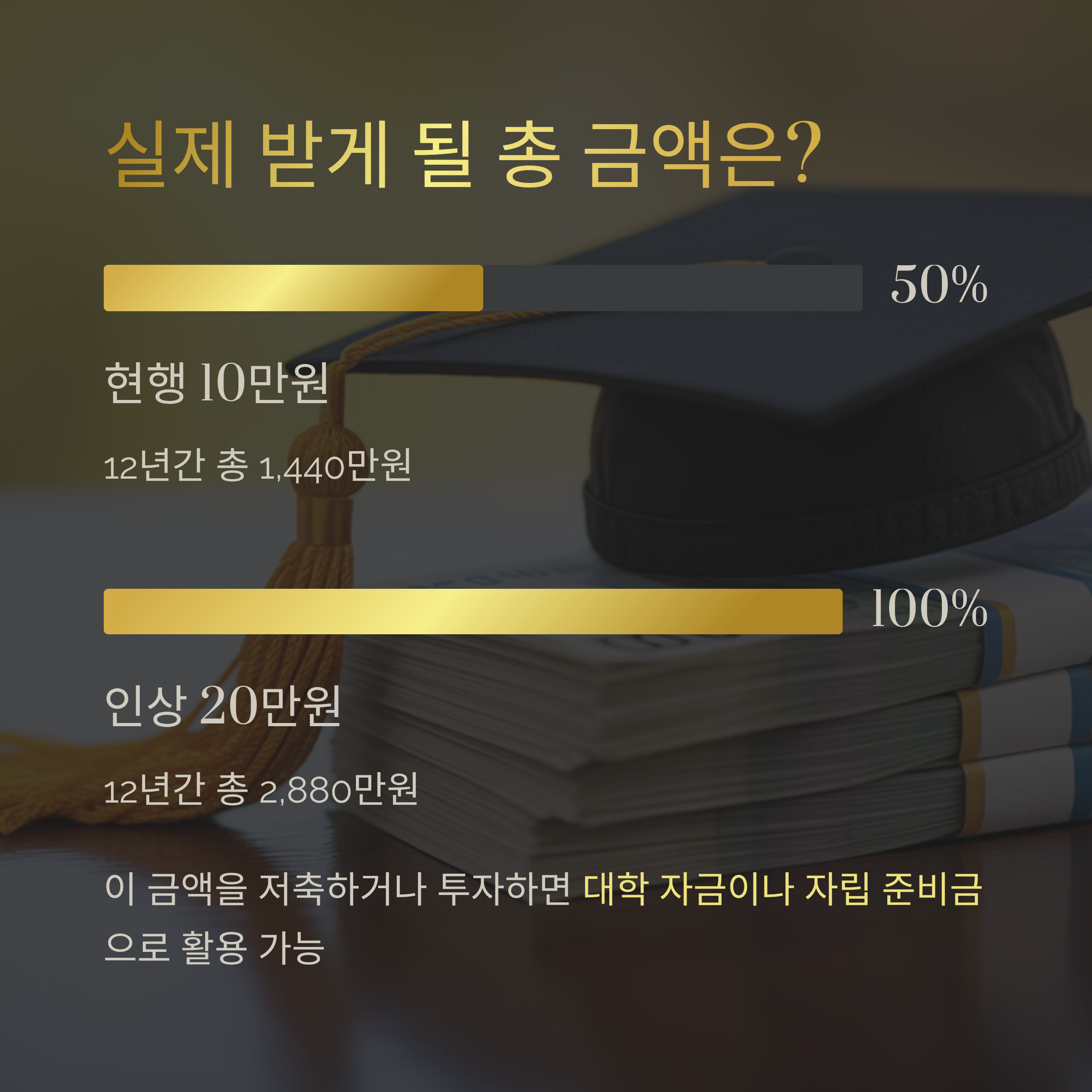 이 돈을 저축하거나 투자에 활용한다면 상당한 대학 자금 또는 자립 준비 자금이 될 수 있습니다.