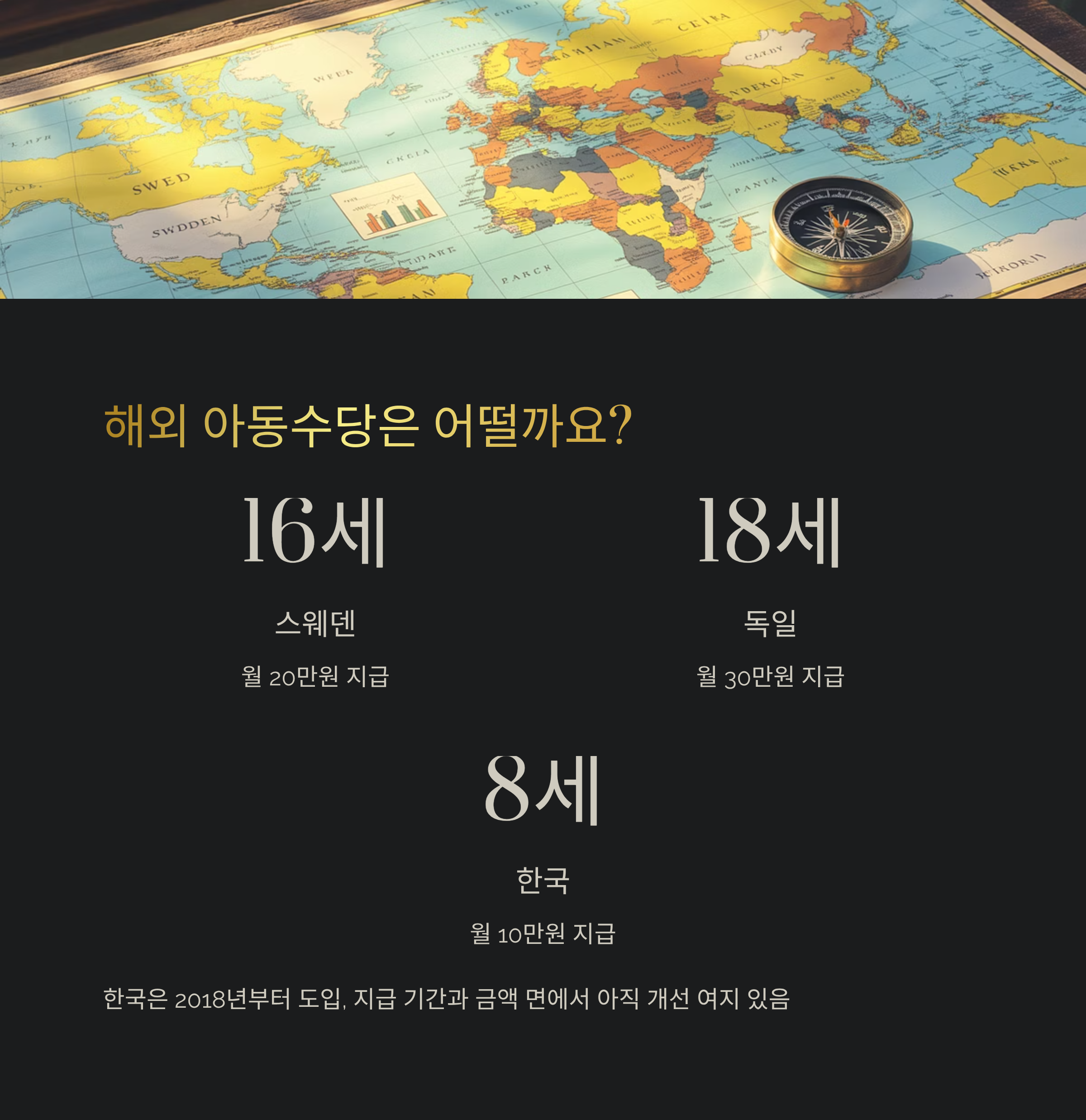 우리나라는 아동수당이 2018년부터 도입되었고, 빠르게 확대되고는 있으나