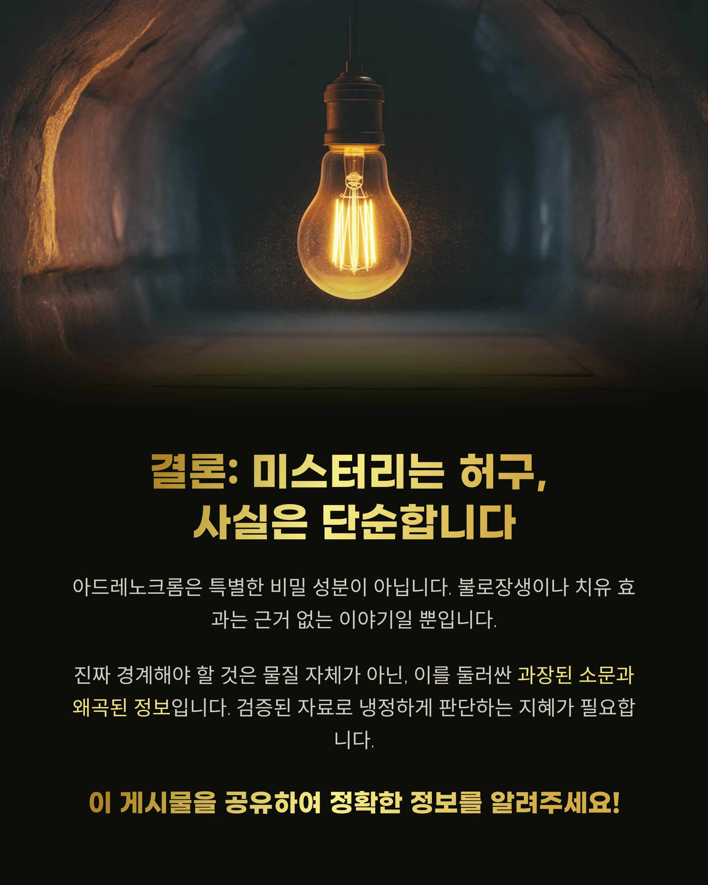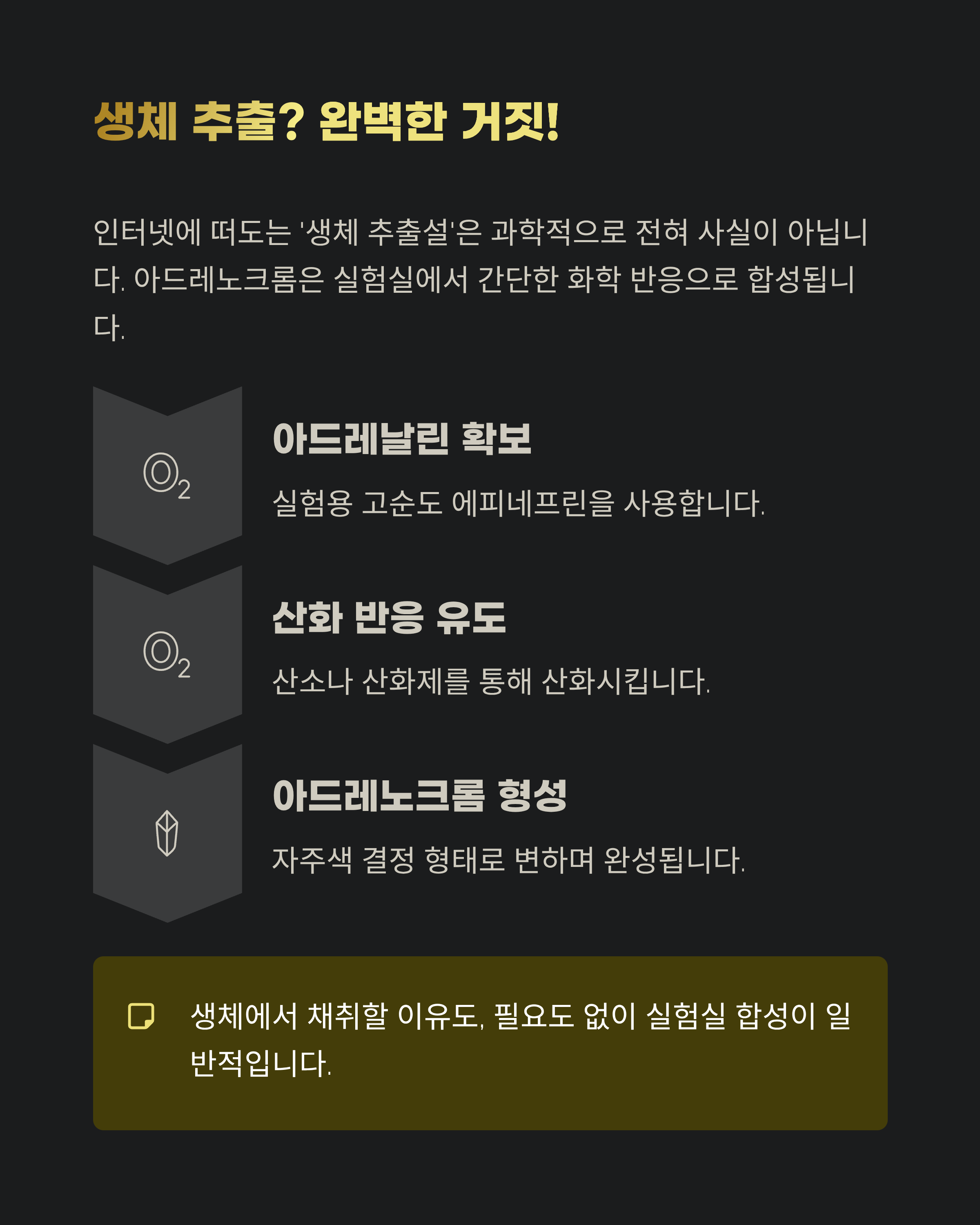 인터넷에서는 '생체에서 아드레노크롬을 추출한다'는 자극적인 이야기가 자주 등장합니다. 하지만 과학적으로 이는 전혀 사실이 아닙니다.
