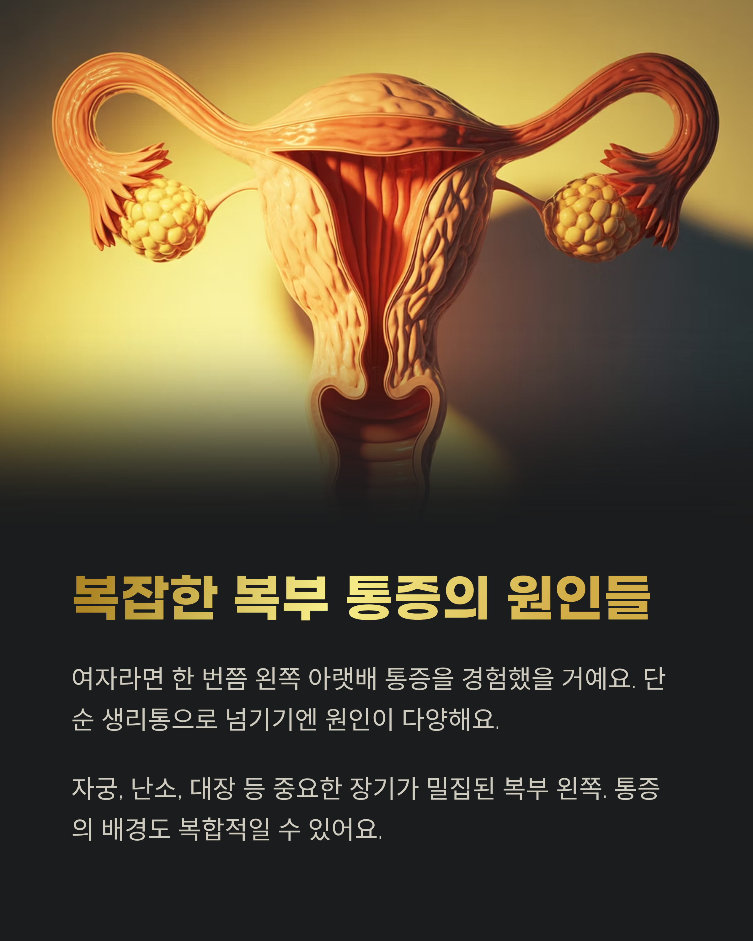 여자라면 한 번쯤 왼쪽 아랫배 통증을 느껴본 경험이 있을 거예요. 하지만 단순히 생리통이라고 넘기기에는 통증의 원인이 생각보다 다양하다는 사실, 알고 계셨나요? 자궁, 난소, 대장 등 복부 왼쪽에는 중요한 장기가 밀집되어 있어서, 통증의 배경도 무척 복합적일 수 있어요. 오늘은 여자 왼쪽 아랫배 통증을 유발할 수 있는 여섯 가지 원인을 살펴보고, 그냥 지나치면 안 되는 위험 신호까지 함께 짚어볼게요.