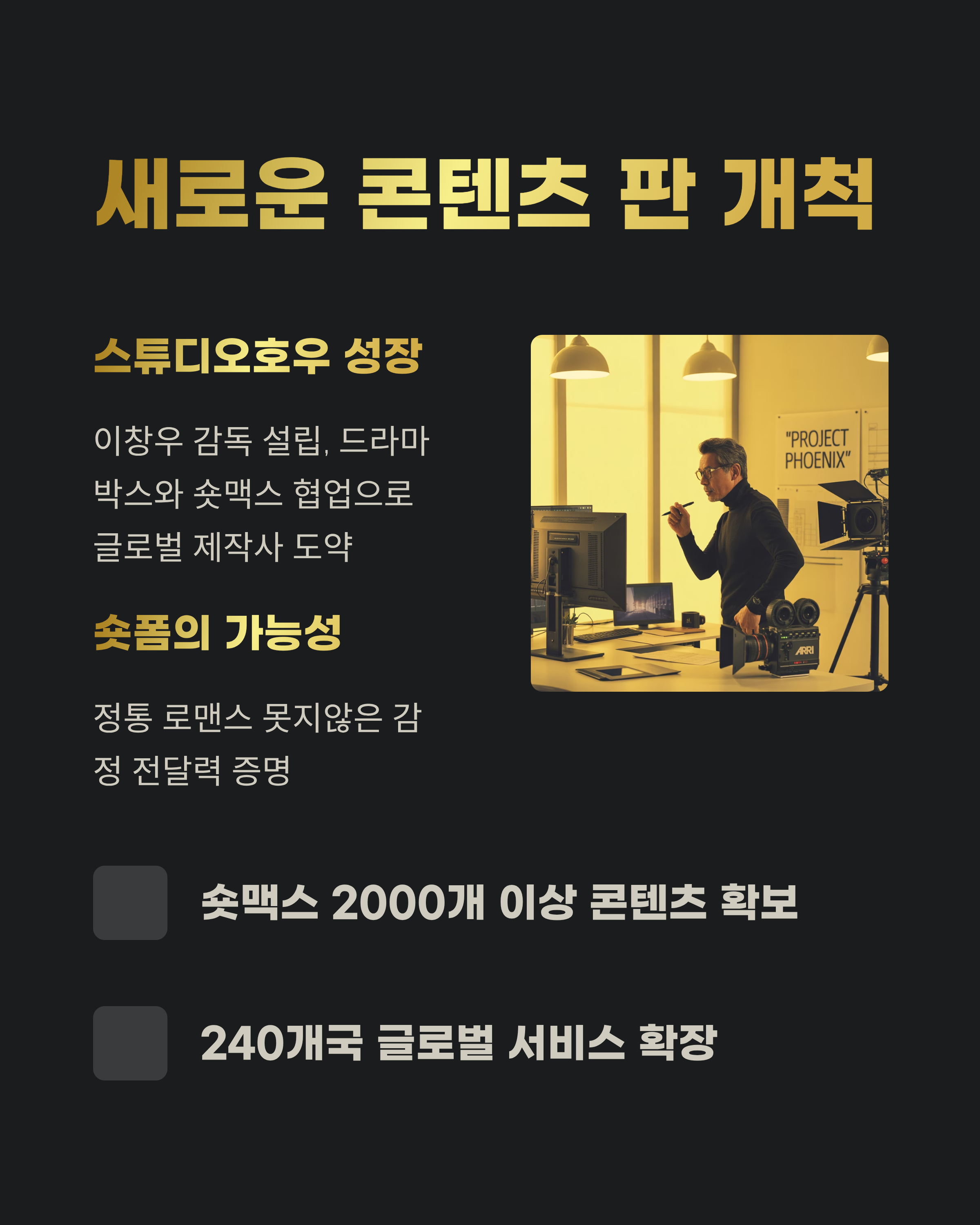 더불어 그가 설립한 스튜디오호우는 현재 드라마박스뿐 아니라 숏맥스와도 협업을 이어가며 글로벌 콘텐츠 제작사로 성장 중입니다. 숏맥스는 현재 2000개 이상의 숏폼 콘텐츠를 확보하고 있으며, 240개국에 서비스되고 있습니다.
