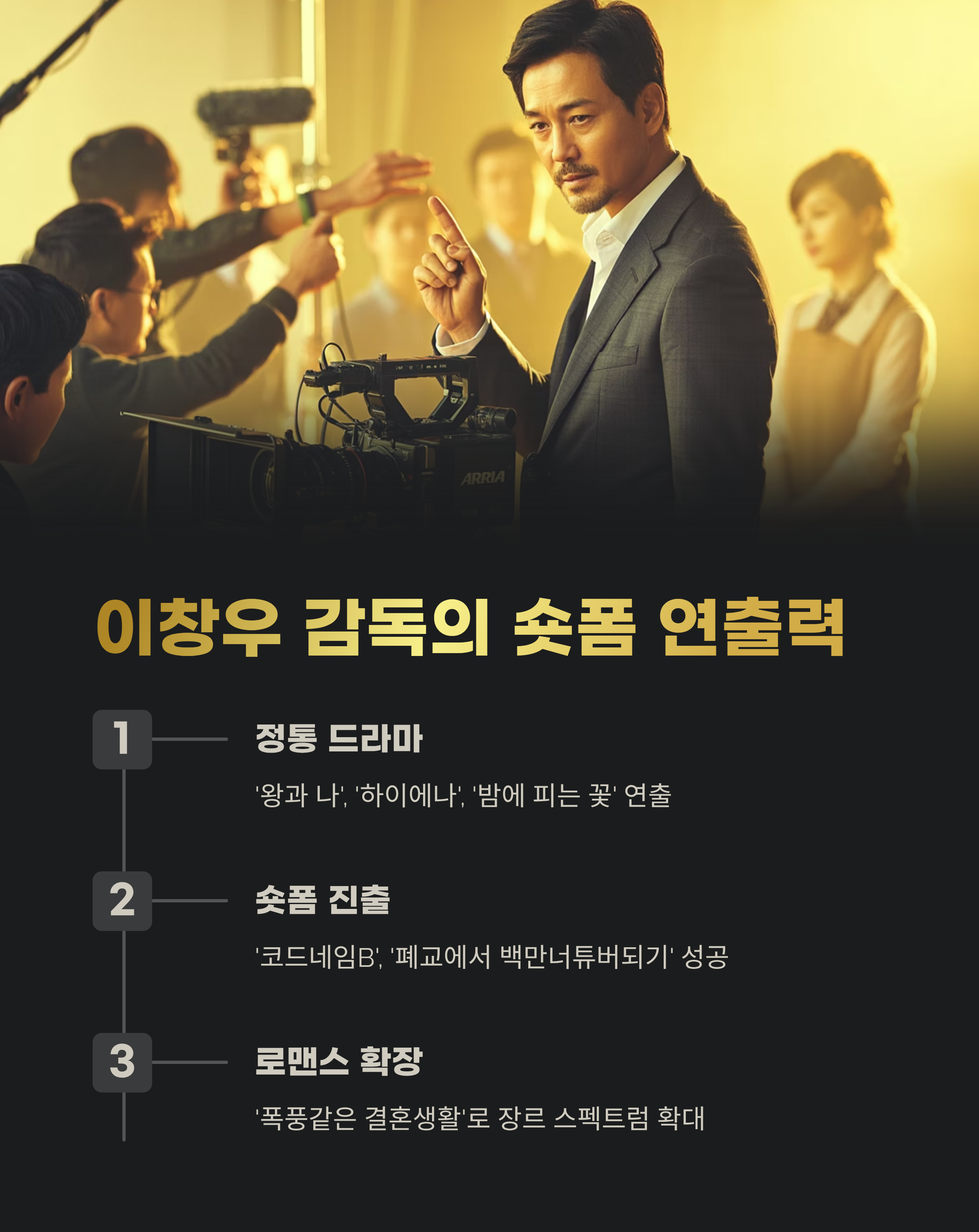 '왕과 나', '하이에나', '밤에 피는 꽃' 등에서 연출력과 감정선 조율 능력을 인정받은 이창우 감독은, 최근 숏폼 영역에서도 선도적 위치를 다지고 있습니다.