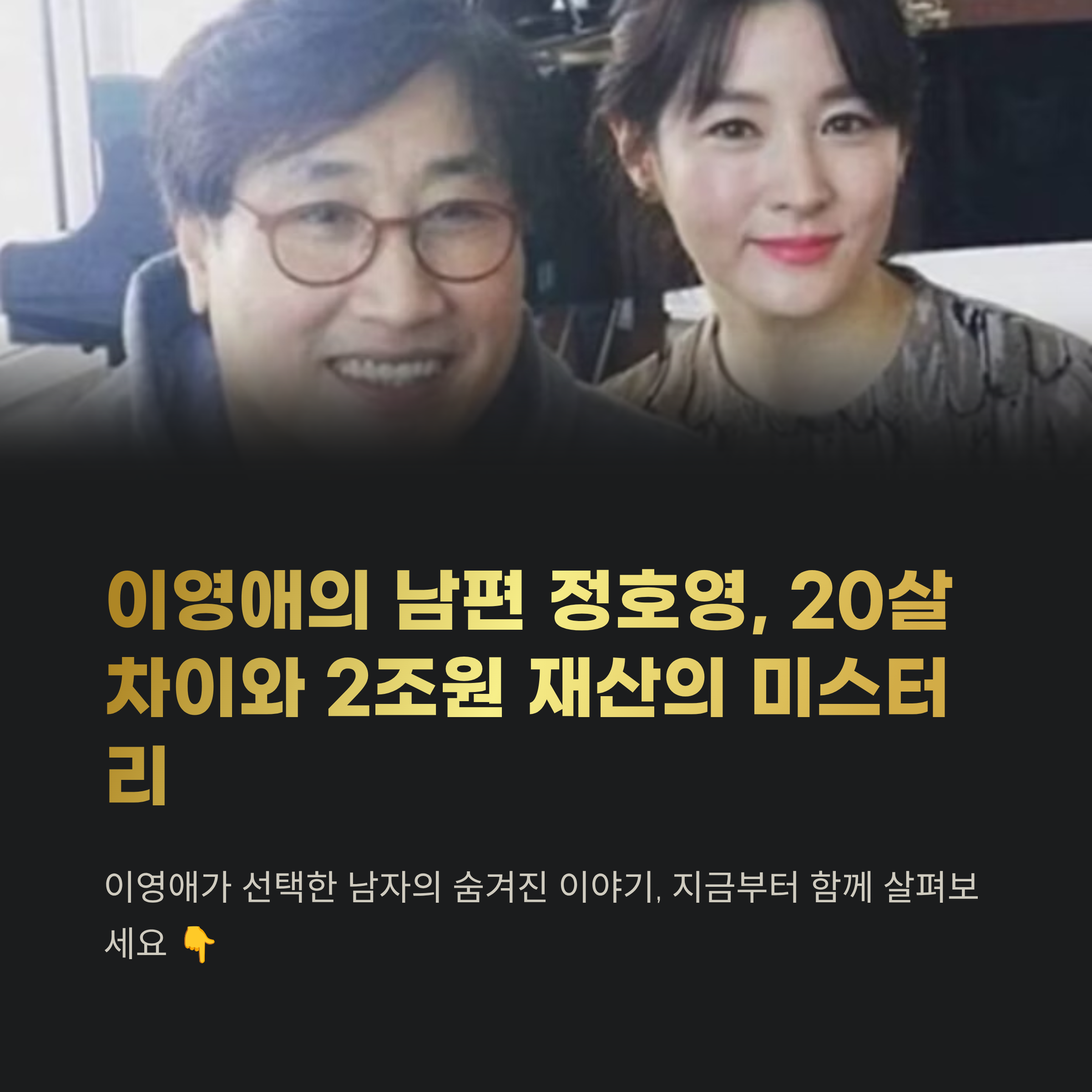 이영애가 오랜만에 드라마로 복귀하면서 또다시 화제의 중심에 섰습니다. 그녀의 활동만큼이나 대중의 관심을 끄는 인물이 바로 그녀의 남편 정호영 씨인데요. 20살이라는 나이 차이, 화려한 재산 배경, 그리고 끊이지 않는 논란까지. 대체 이 남자는 누구인지, 두 사람의 이야기를 지금부터 함께 들여다보겠습니다.