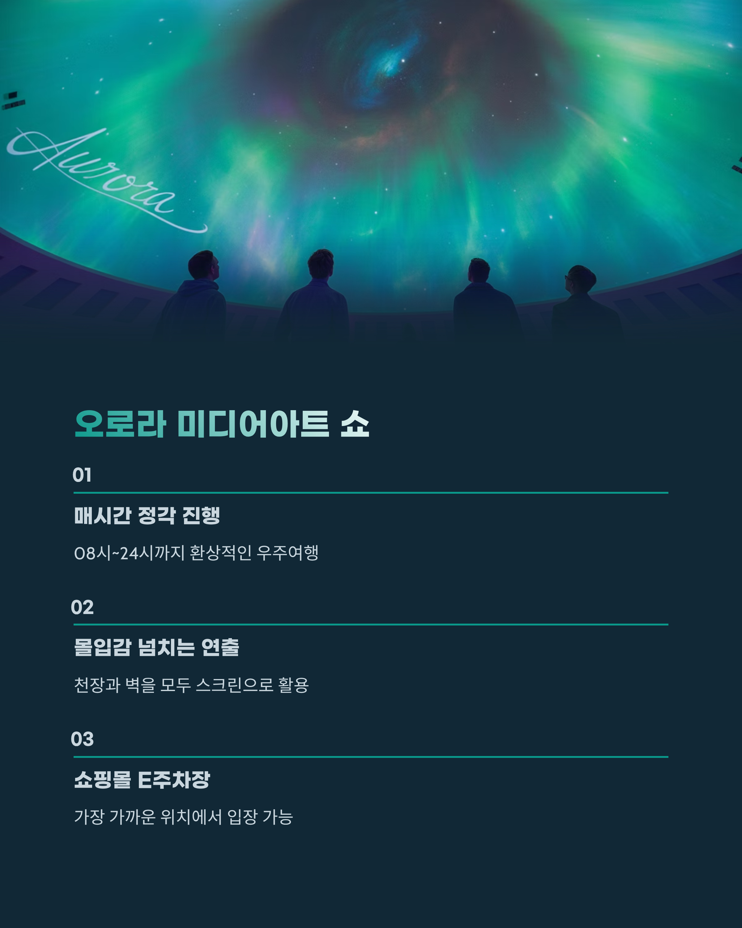 오로라 미디어아트 쇼, 정각에 만나는 환상적인 우주여행